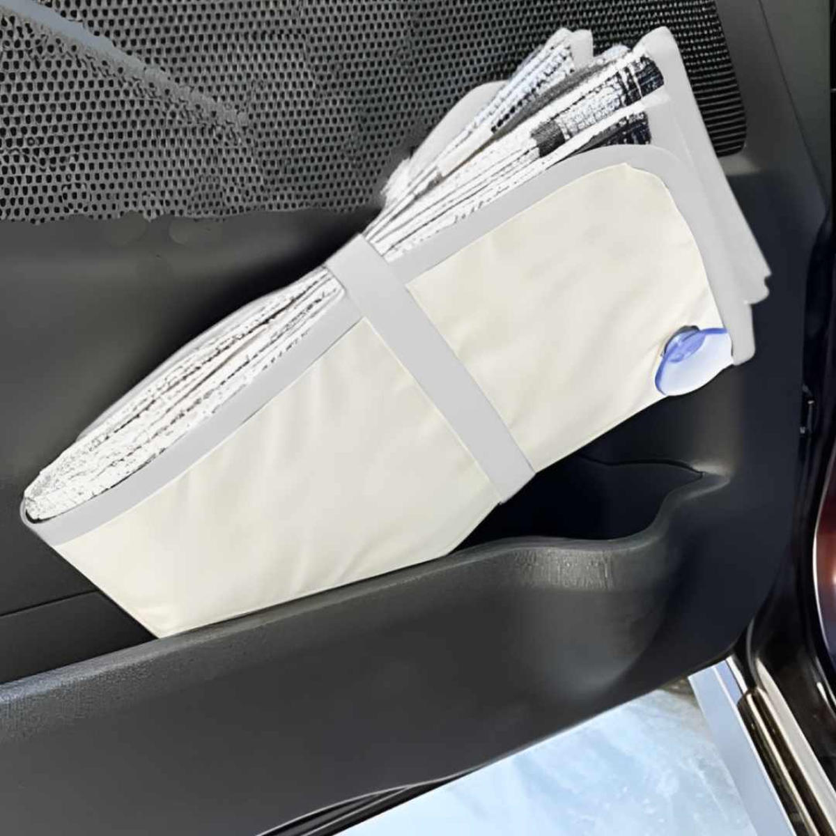 ●車内が高温になるのを和らげる、フロントガラス用の折りたためるサンシェードです。