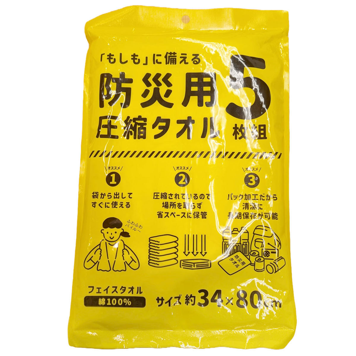 ●いざという時の備えに便利な圧縮タオル5枚入です。