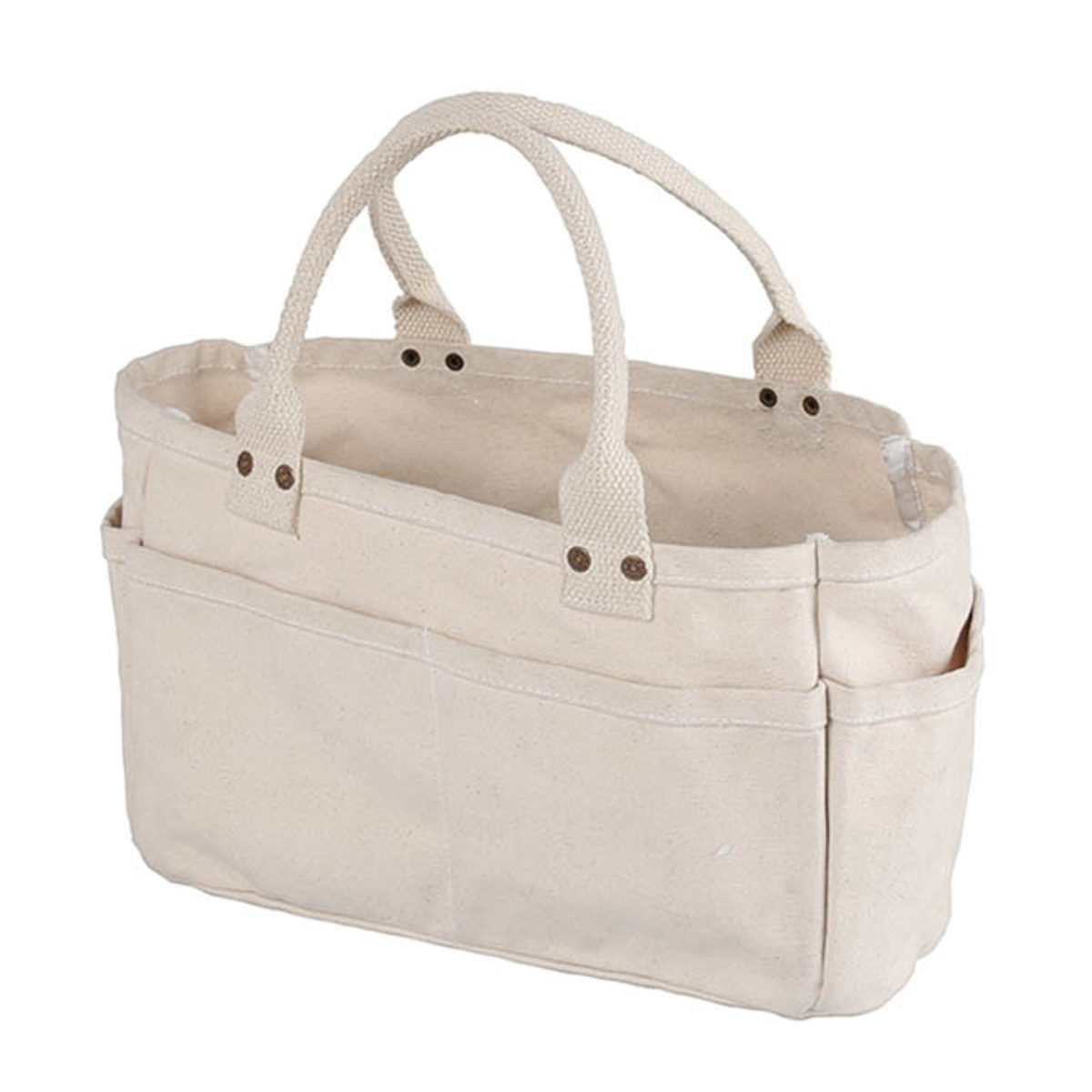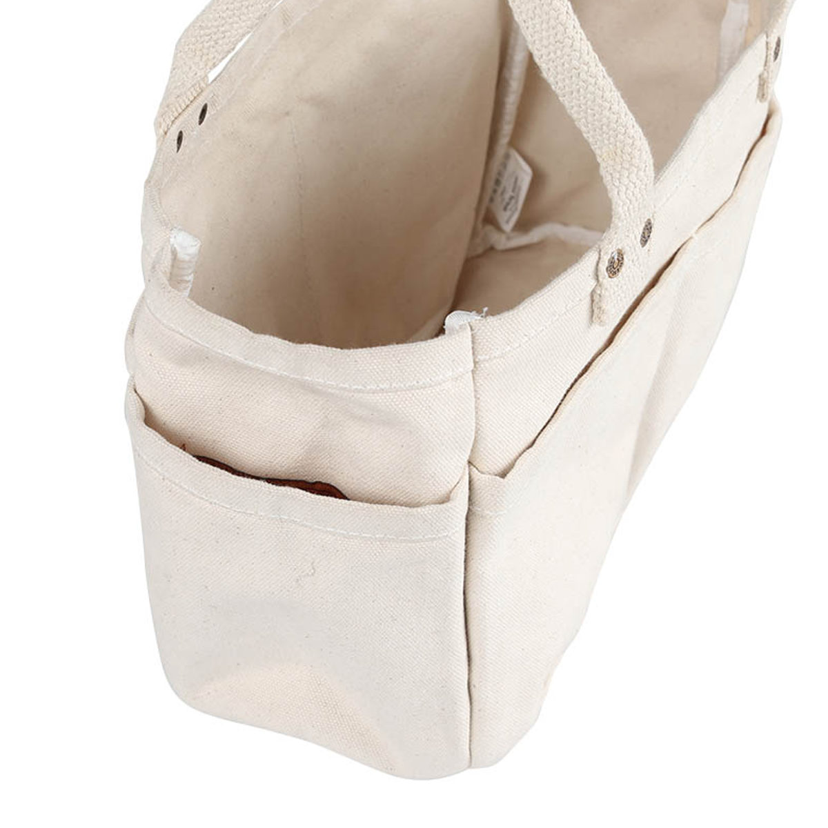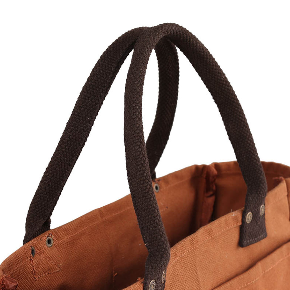 14オンスのキャンバスを使用した少し固めの生地感は、使っていく中で馴染み、味が出てきます。ハトメに施されたDULTONのエンボス加工、サイドポケットの内側にさり気なく施されたタグ等、ディテールにもこだわっています。