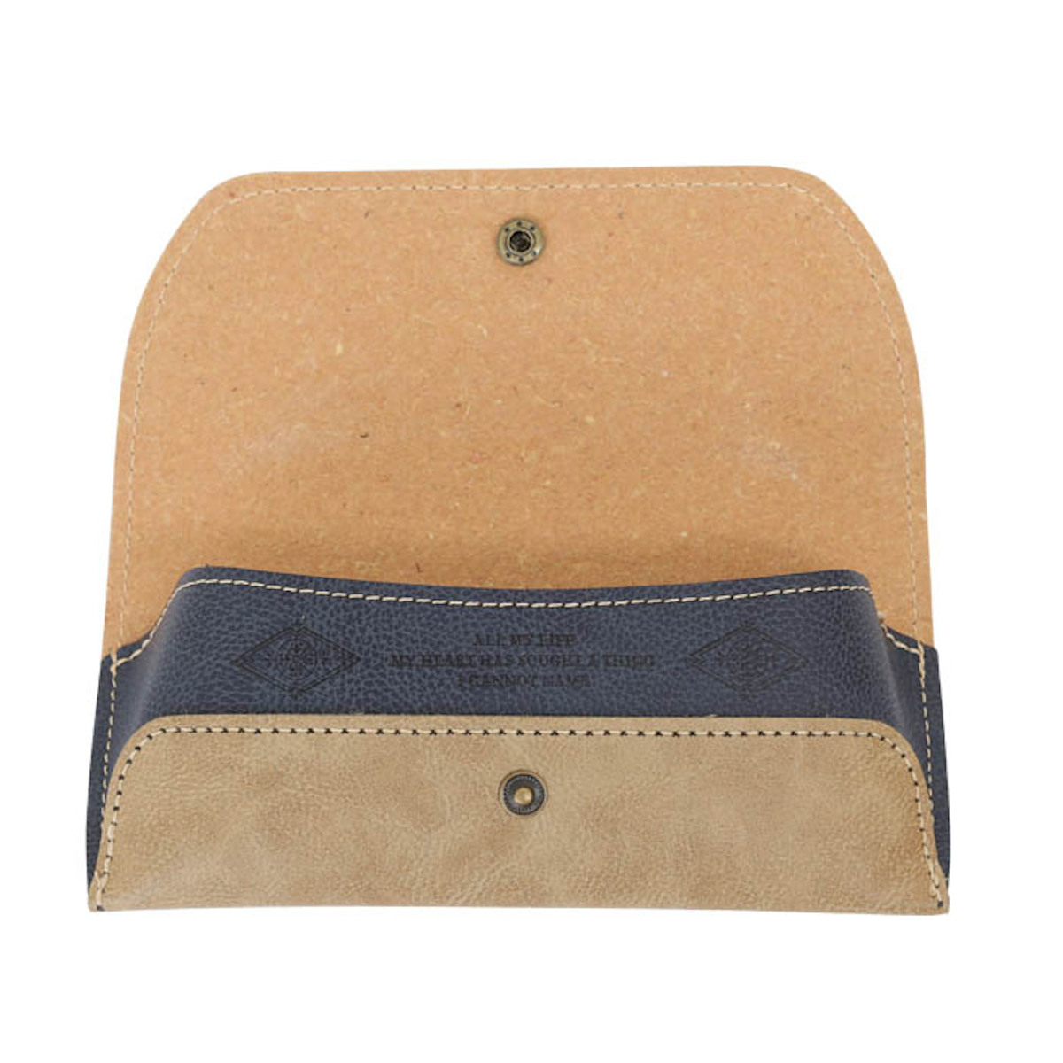 合皮を使用した、柔らかく肌ざわりの良いメガネケースです。フォーマルでもカジュアルでも使用できる、シンプルでおしゃれなデザインで、カラーは4種類からお選びいただけます。サッと鞄から取り出したとき、お気に入りのケースだと毎日のほんの一瞬でも嬉しくなります。
