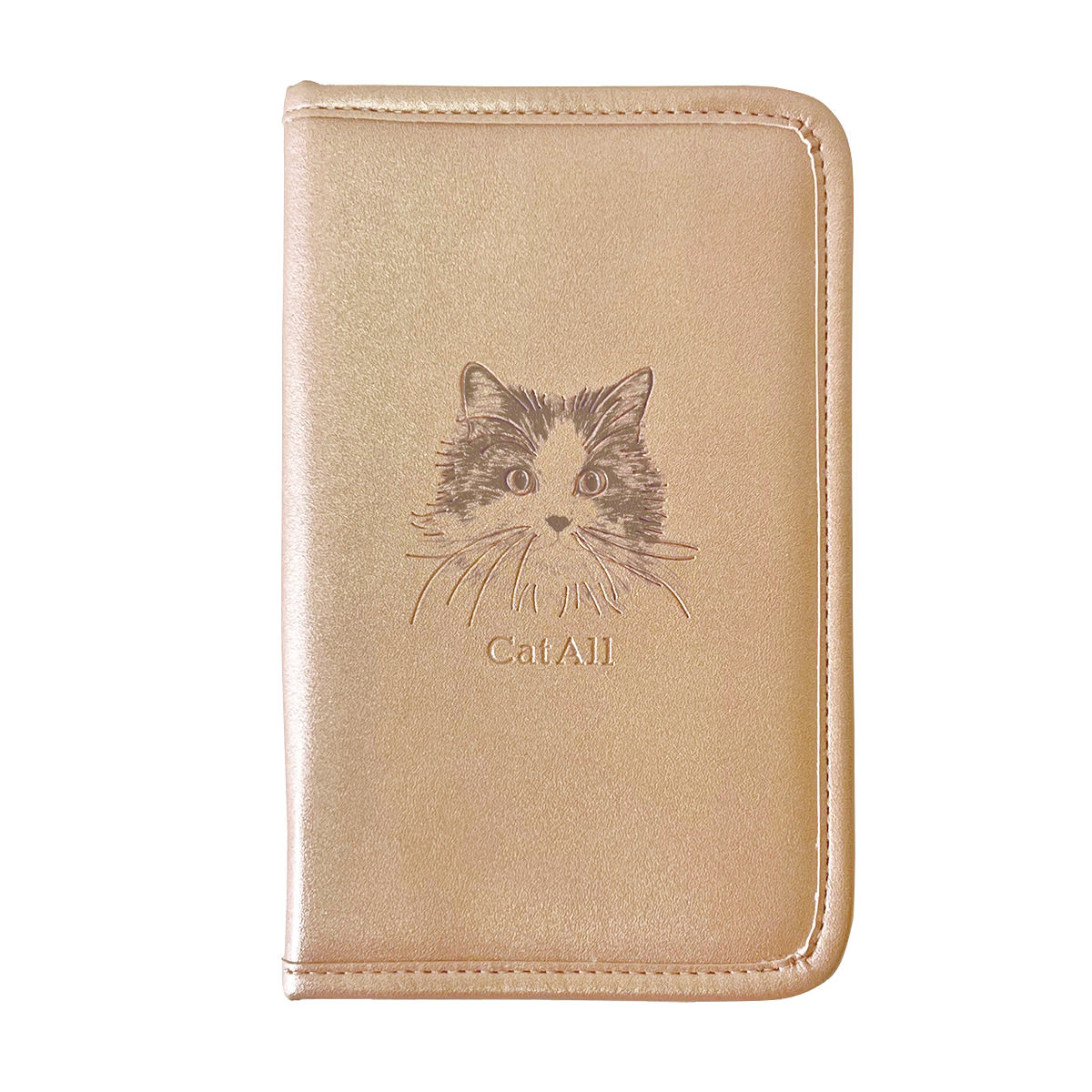 ネコのイラスト入りロゴがデザインされたマルチポーチです。スリムなのに大容量で多機能なので、通帳ケースや手帳ケース、通院ケースなど様々なシーンでご利用いただけます。合成皮革を使用しているので、手触りの良い使い心地です。