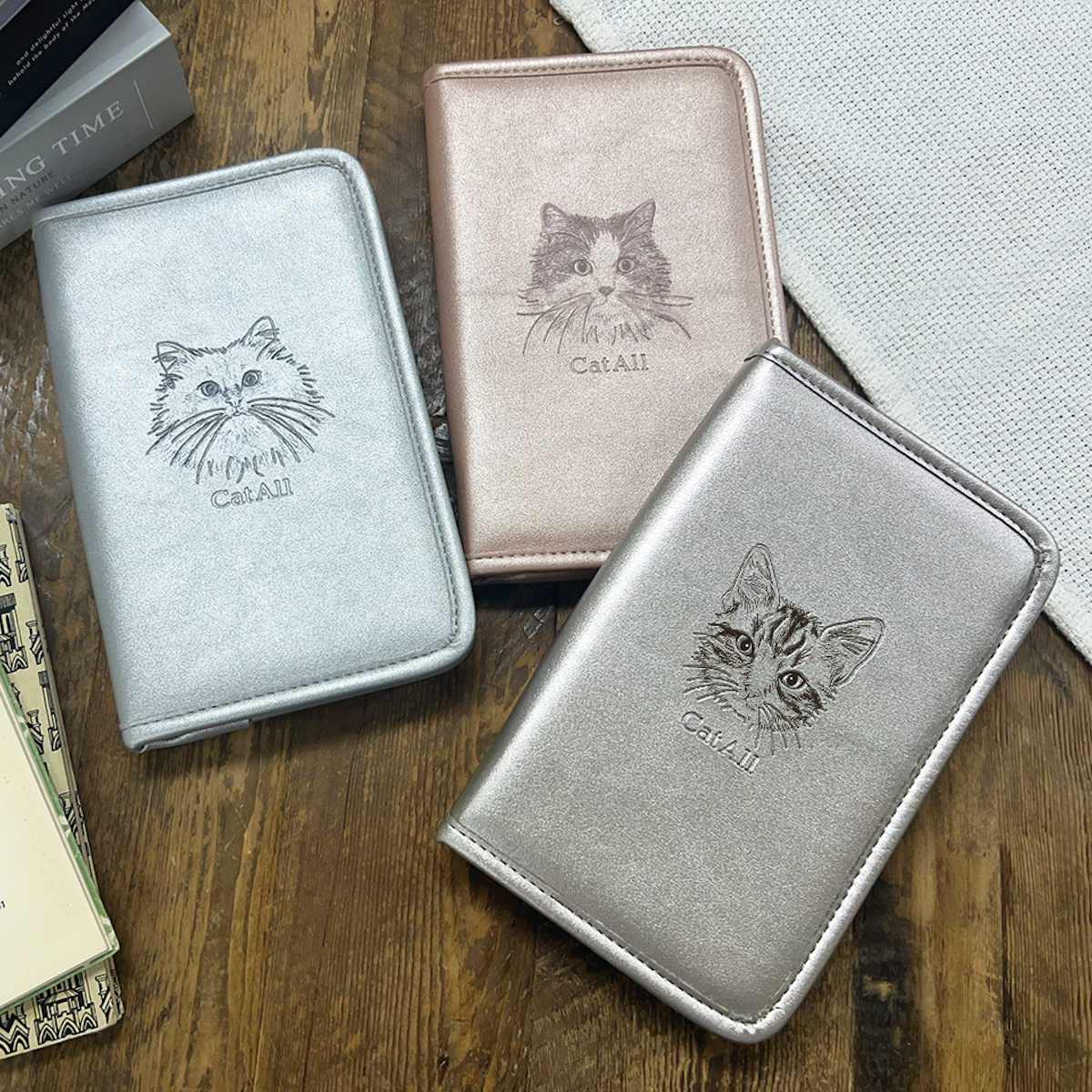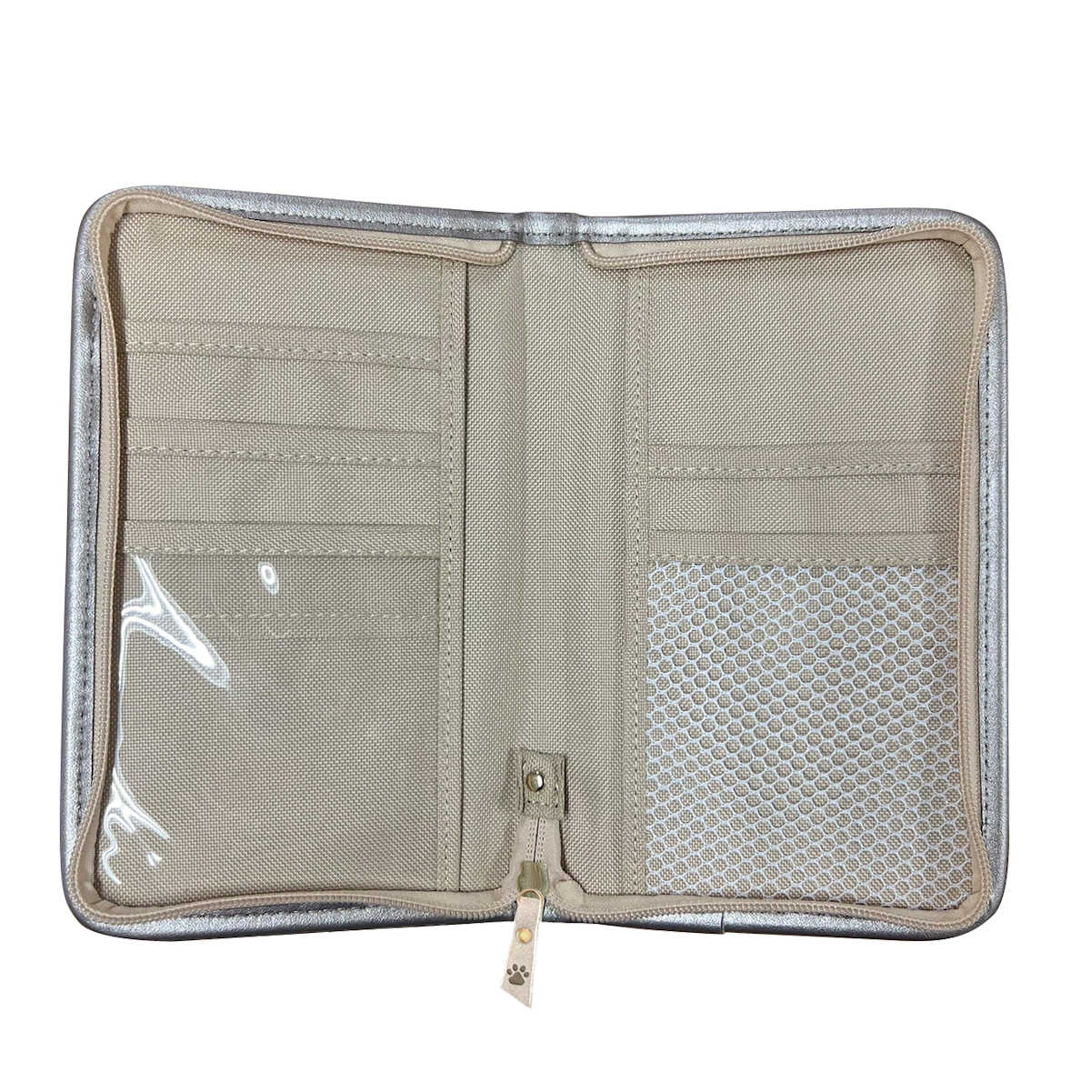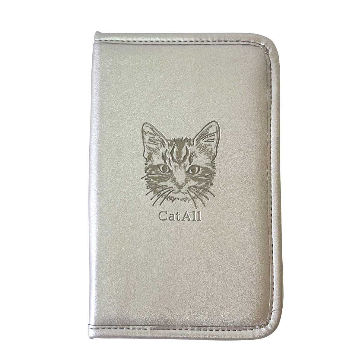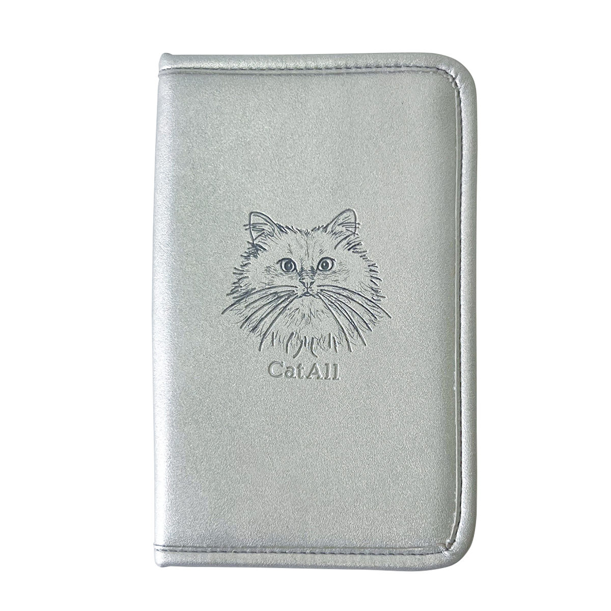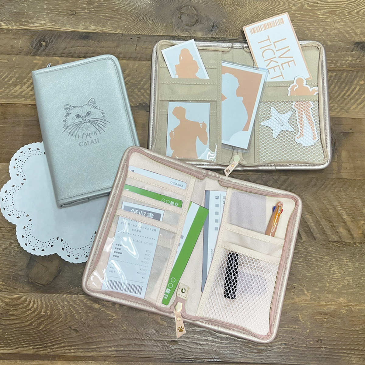ネコのイラスト入りロゴがデザインされたマルチポーチです。スリムなのに大容量で多機能なので、通帳ケースや手帳ケース、通院ケースなど様々なシーンでご利用いただけます。合成皮革を使用しているので、手触りの良い使い心地です。