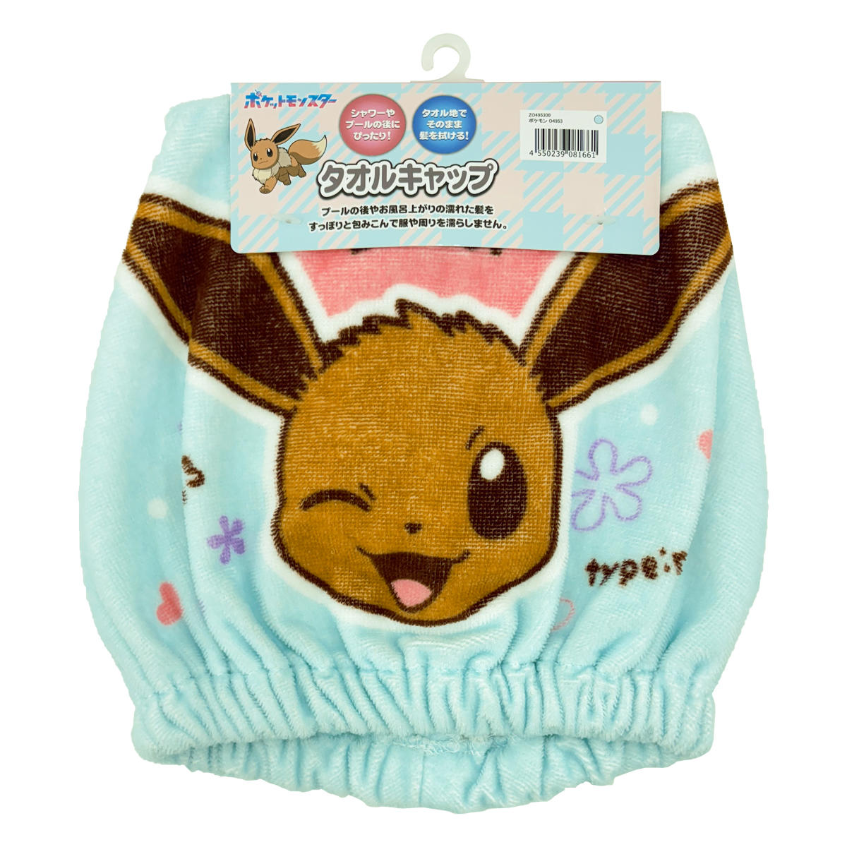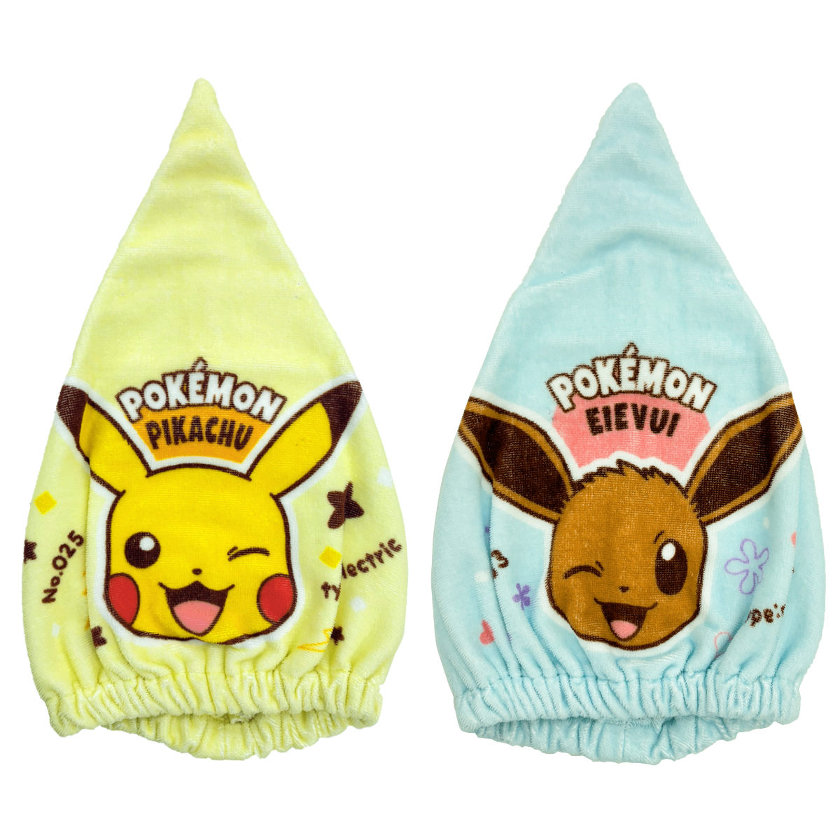 大人気ポケットモンスターのピカチュウとイーブイがそれぞれプリントされたお子様用タオルキャップです。プールやお風呂上りなど様々なシーンで大活躍します。