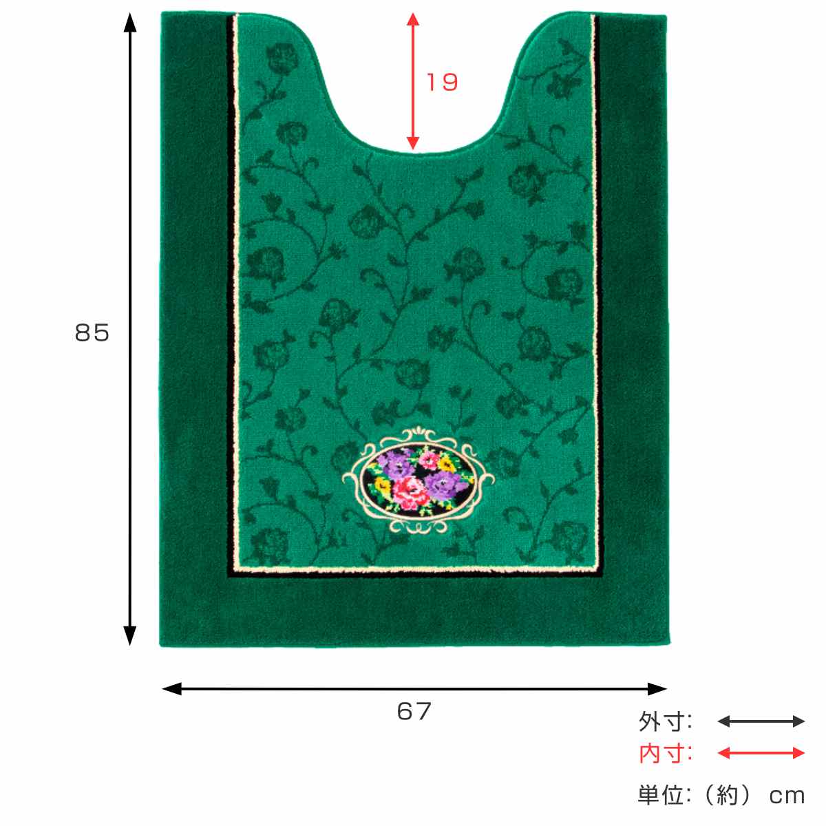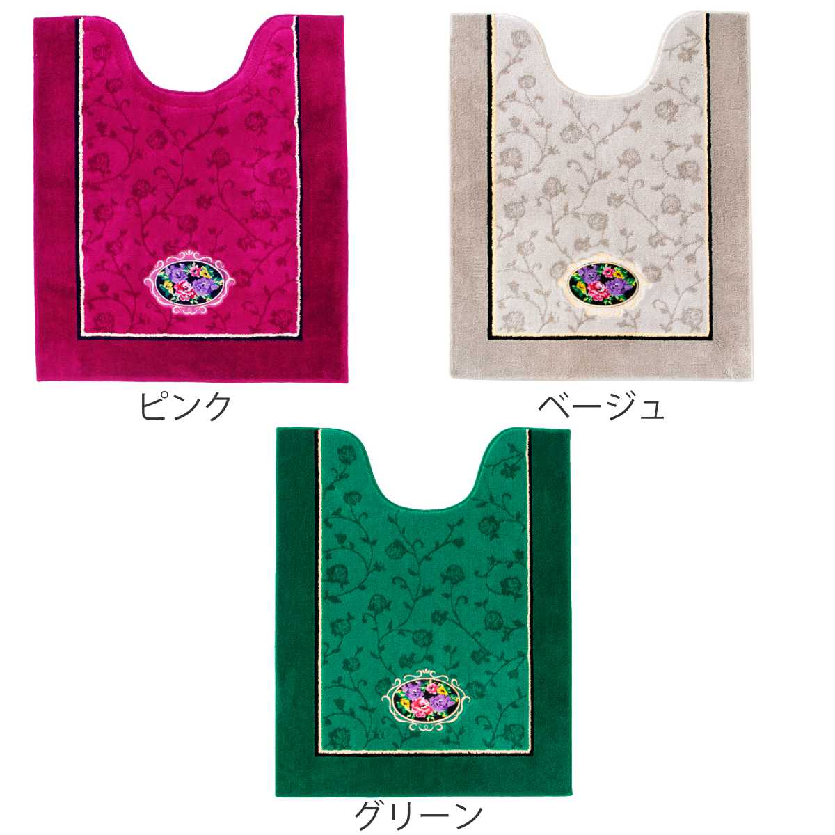 ウィルトン織りならではの繊細な地模様が美しいトイレマットです。1枚のマットを作るために用意する糸は約1500~2000本。ぎゅっと目の詰まった踏み心地、しっかりとした風合いが特徴です。