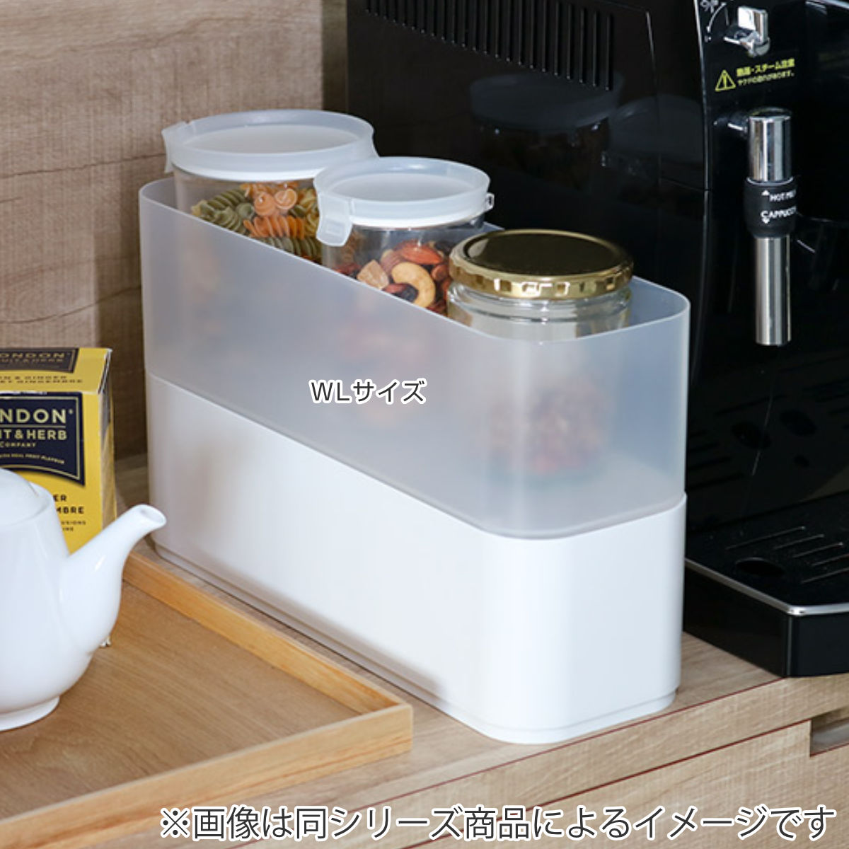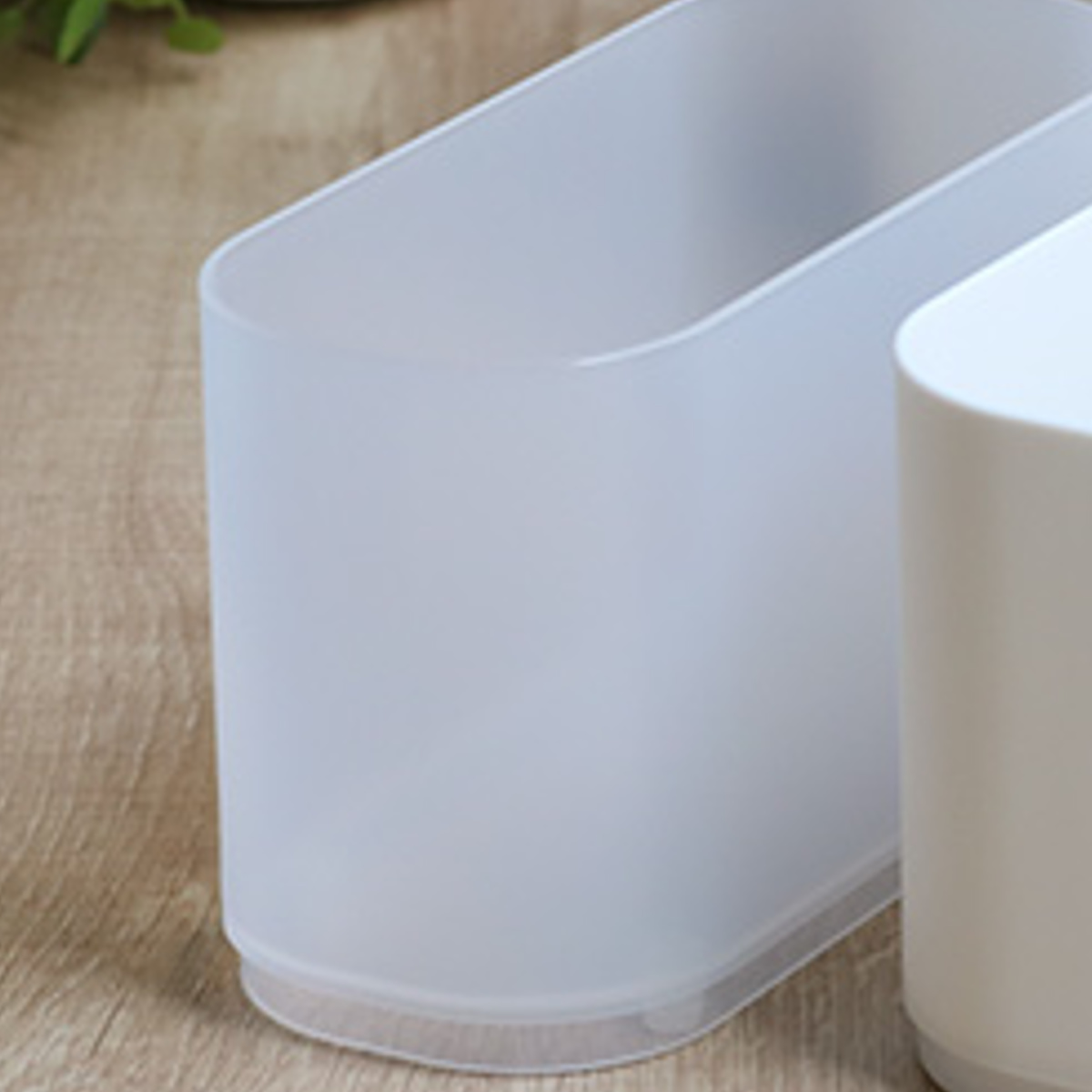収納物がうっすら見える半透明タイプです。中身をほんのり隠しつつ、すっきりした印象を保つことができます。プラスチック素材のため汚れてもすぐにお手入れできるのも嬉しいポイントです。
