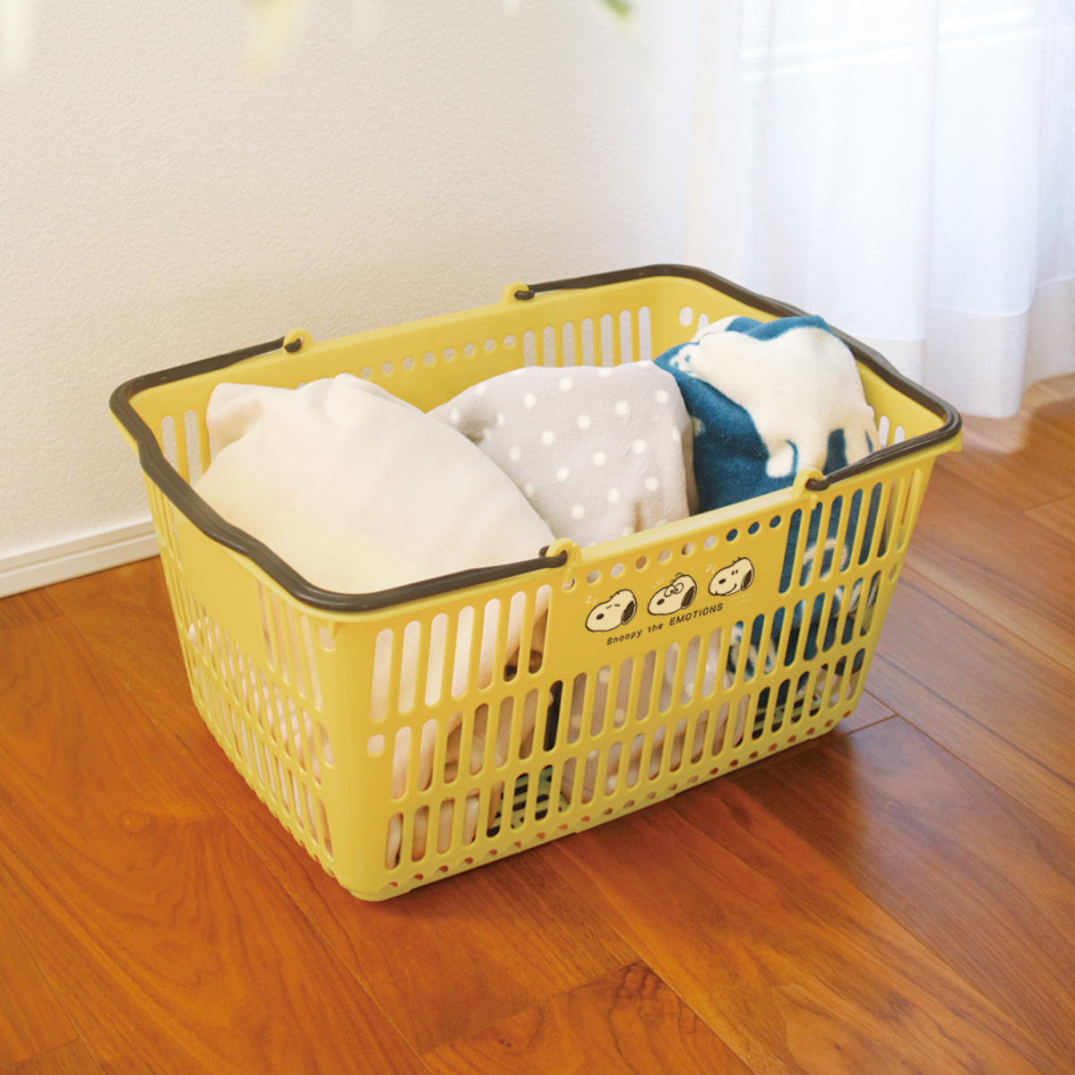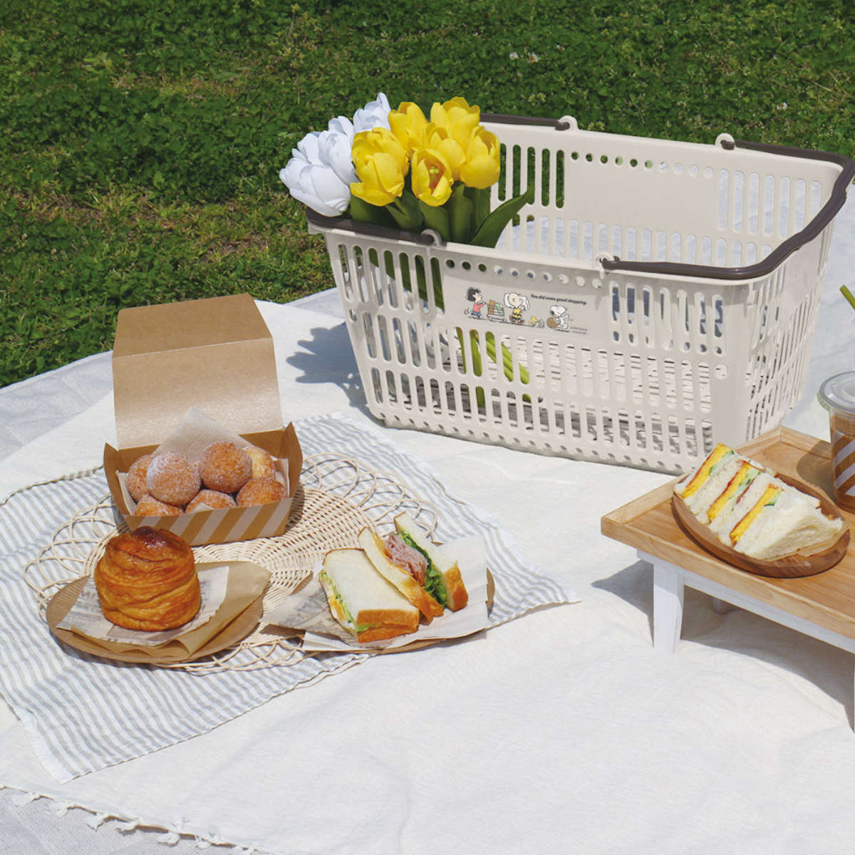 かわいいスヌーピーがデザインされた、大人気のショッピングバスケットがカラーを変えてリニューアルしました。また、ワンポイントでデザインされたスヌーピーのイラストもカラフルになって、より可愛くなりました。可愛くなったバスケットは、ショッピングバスケットだけでなくお部屋の収納にもおすすめです。