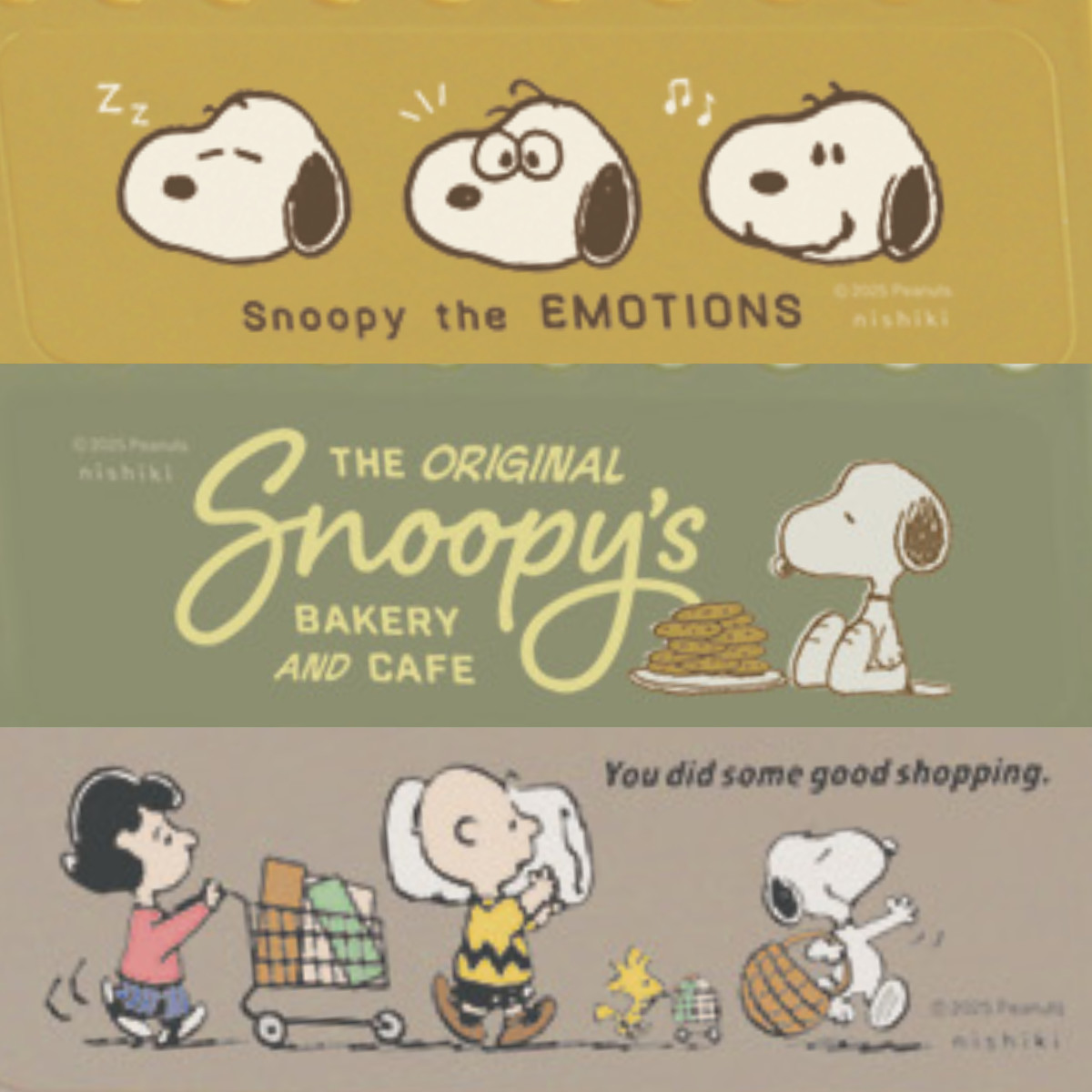 ワンポイントでスヌーピーと仲間たちが描かれています。カラーによってスヌーピーのデザインが異なります。