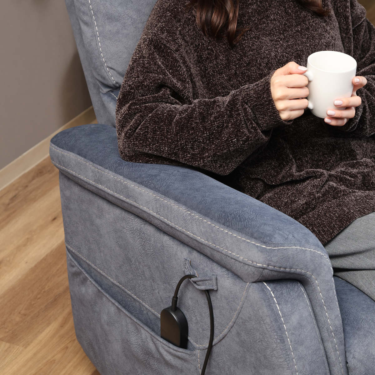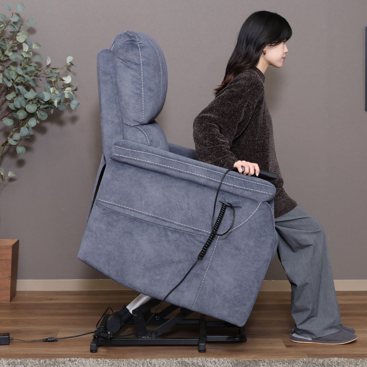 座面後部が20秒で45度までせり上がり、ラクに立ち上がることができます。ゆっくりとした動作で、安全に立ち上がりをサポートしてくれます。