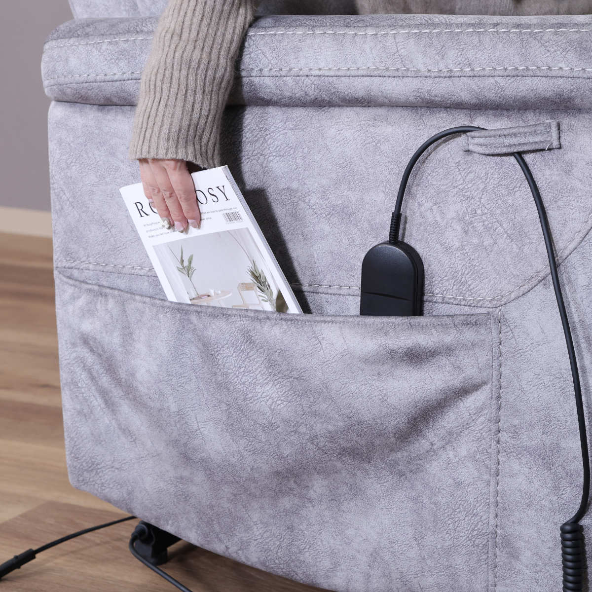 側面には雑誌やリモコンなどを収納できる便利なポケットが付いています。