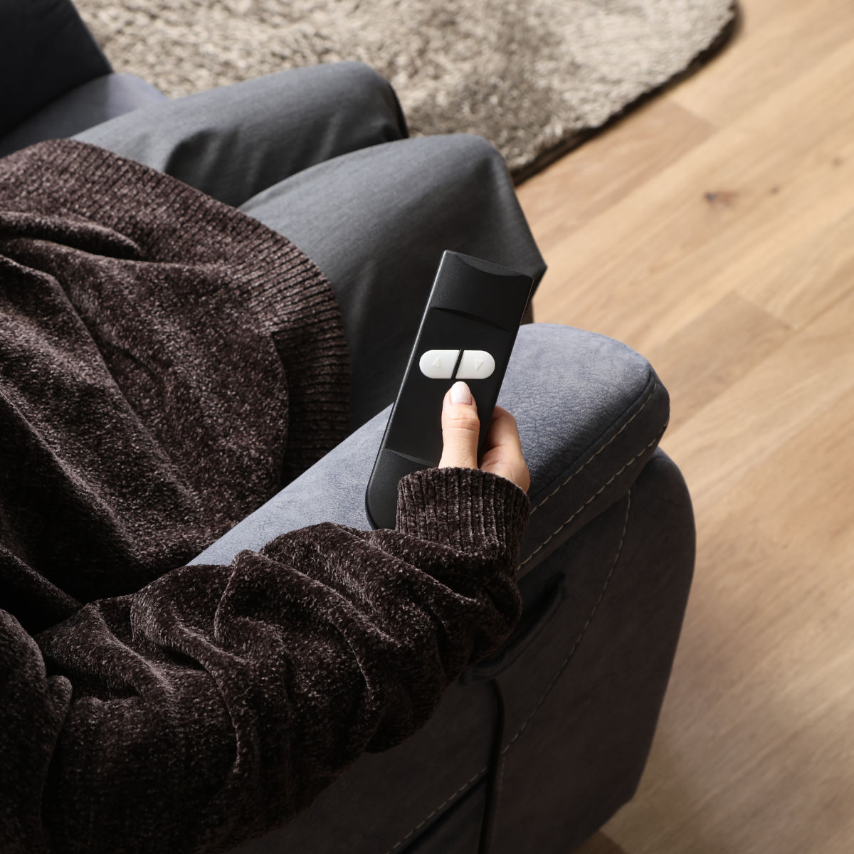リクライニングはフットレストも連動し、リモコンで簡単に操作できます。