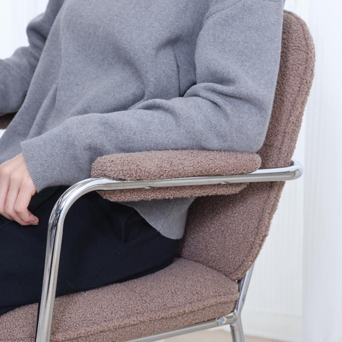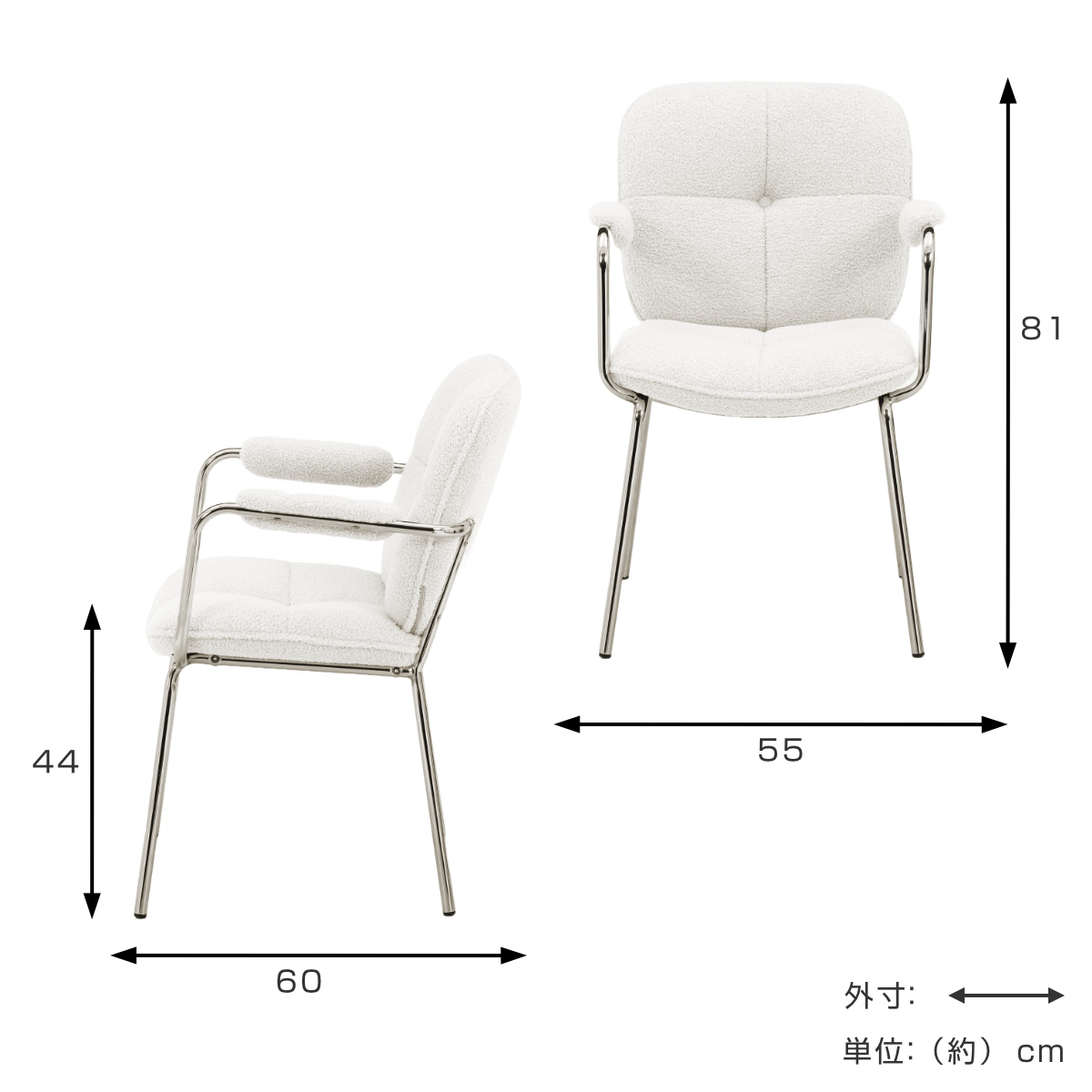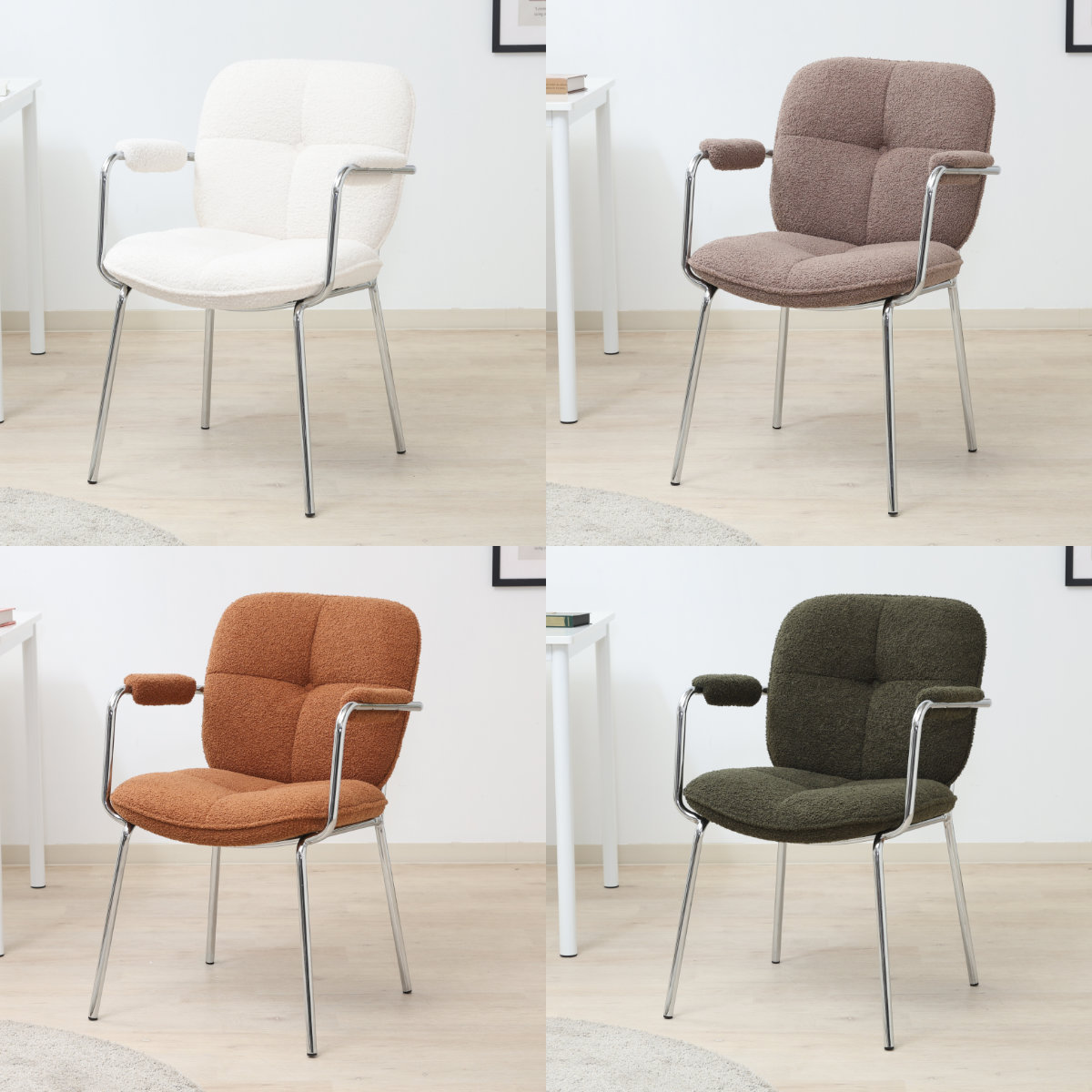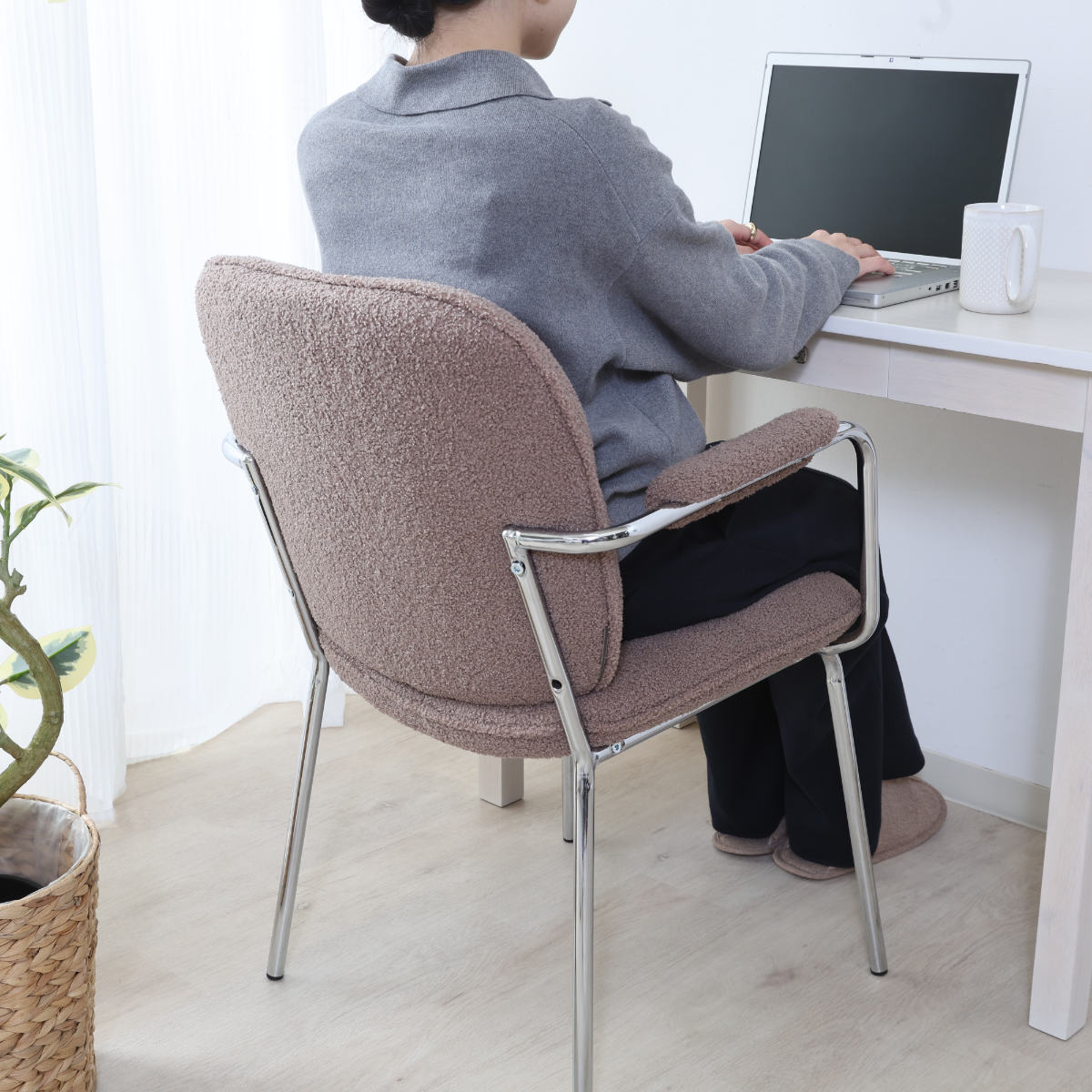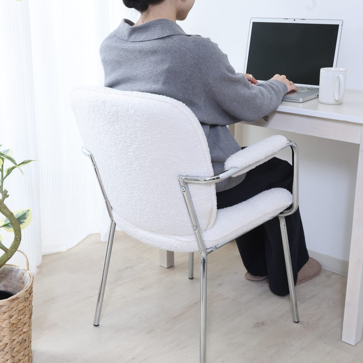 もこもこした肌触りのポリエステル生地とスタイリッシュなシルバーのフレームを組み合わせたおしゃれなダイニングチェアです。触り心地が良く、座るたびに癒されるアイテムです。