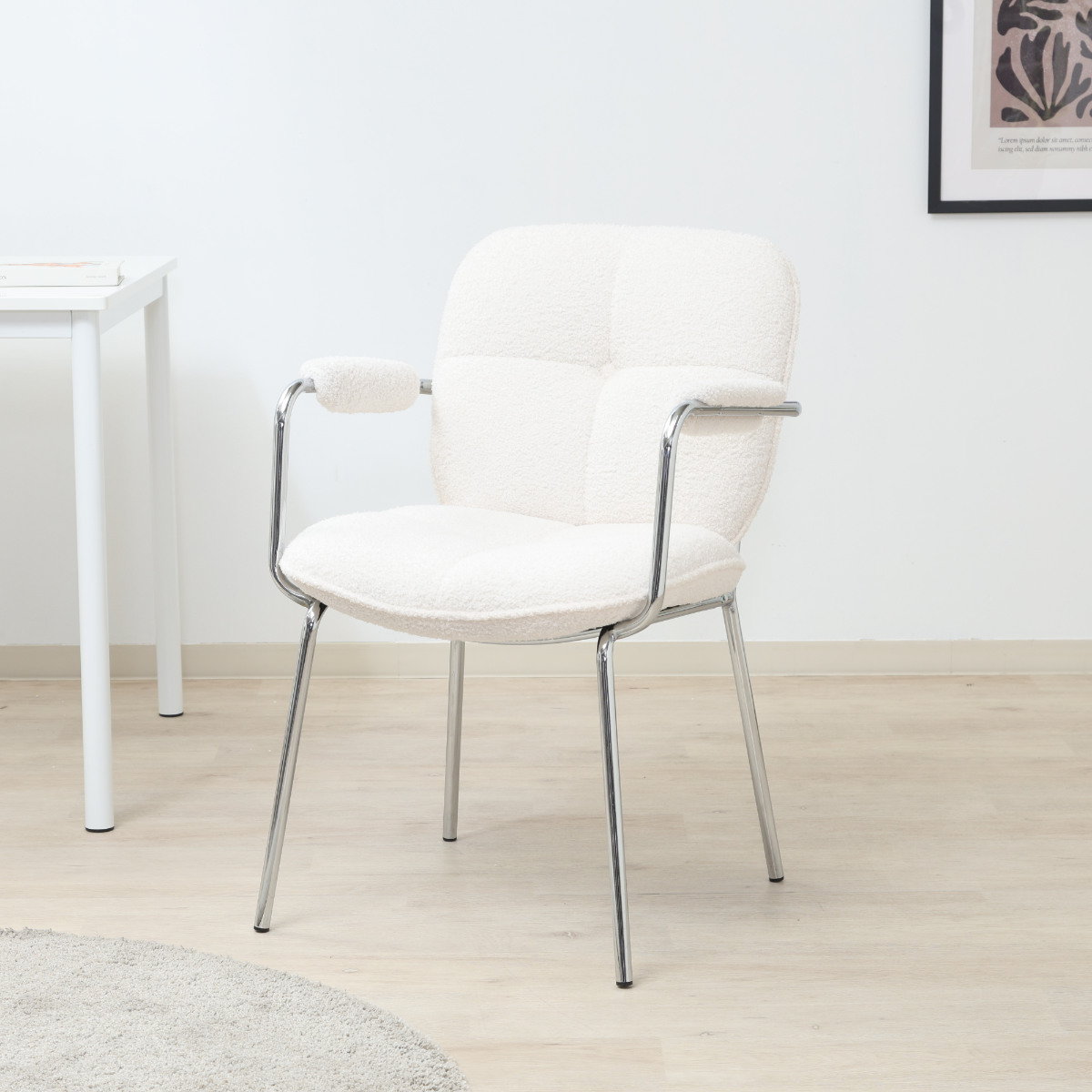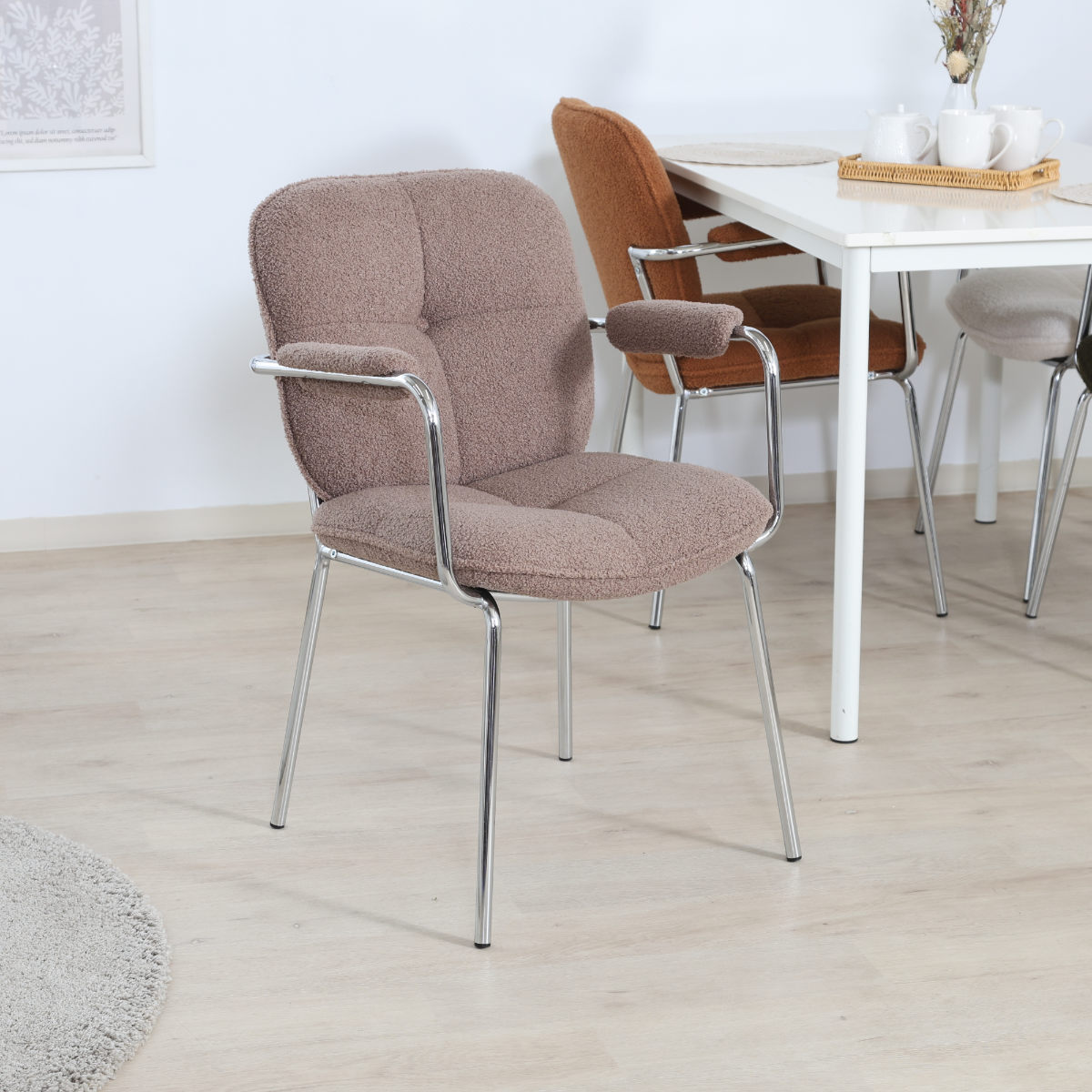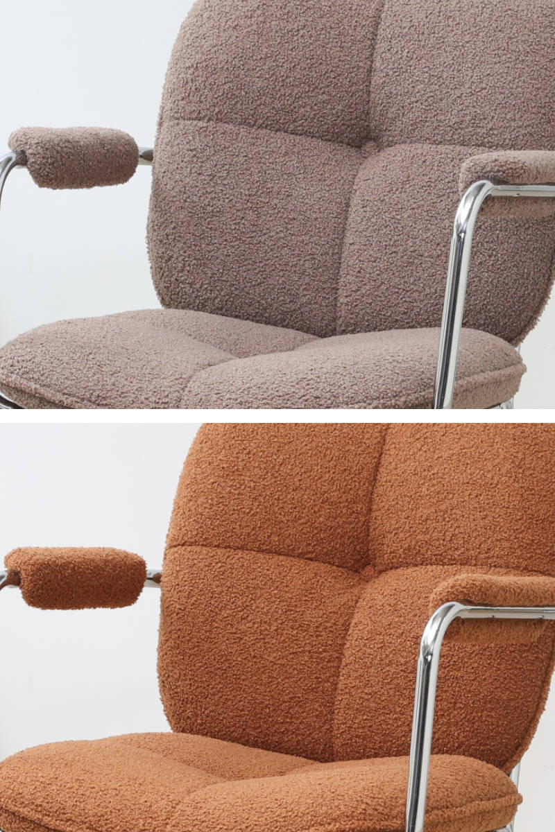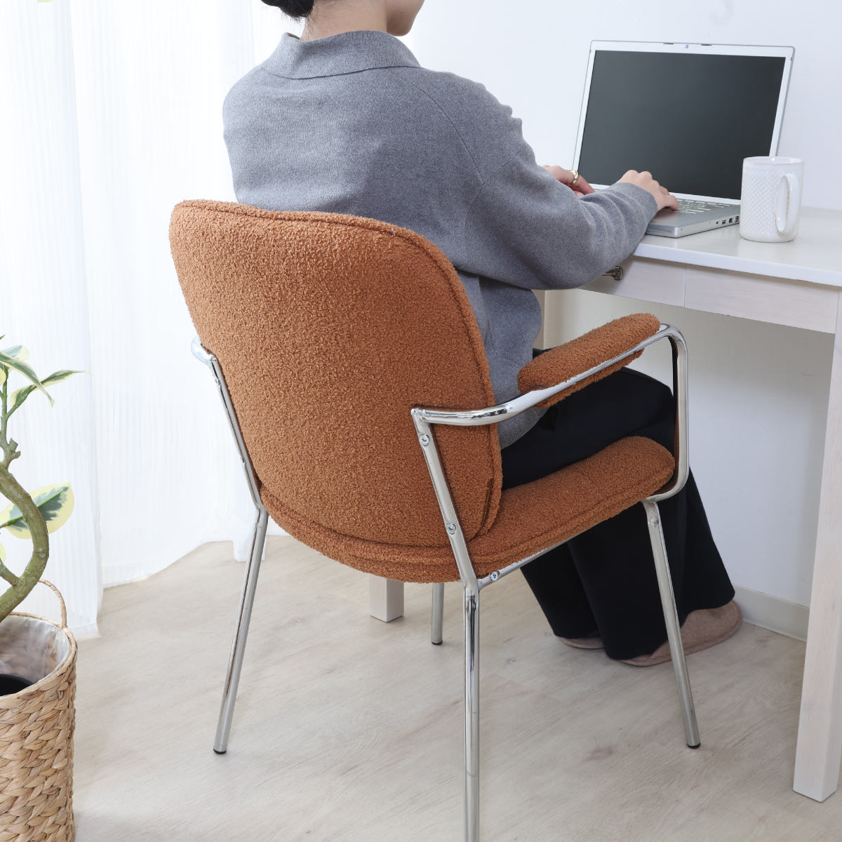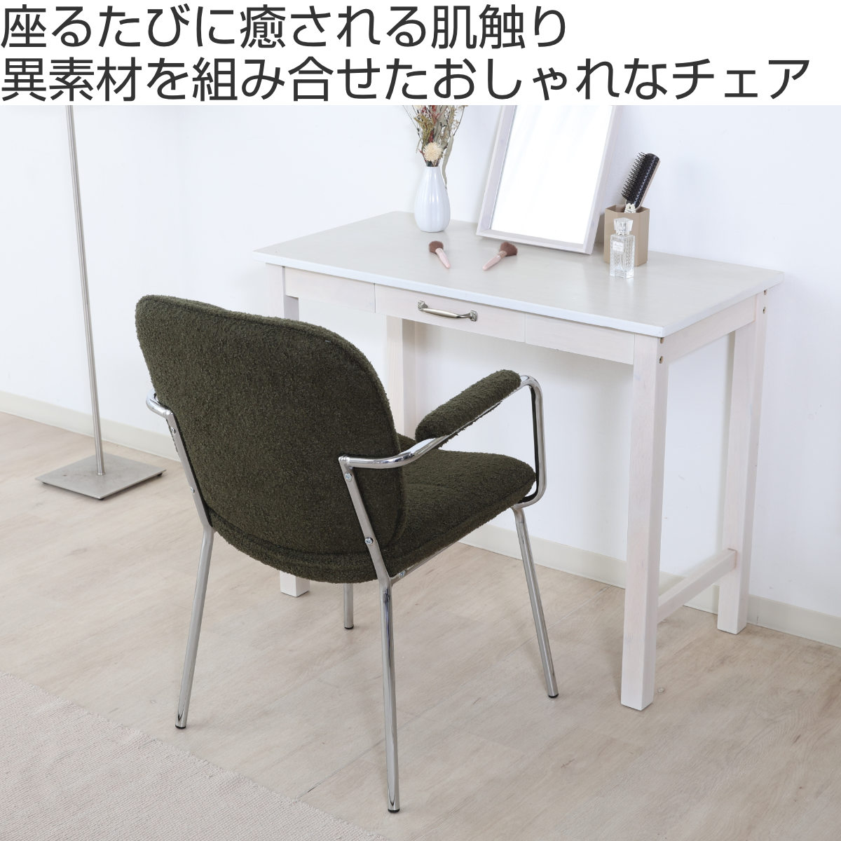 もこもこした肌触りのポリエステル生地とスタイリッシュなシルバーのフレームを組み合わせたおしゃれなダイニングチェアです。触り心地が良く、座るたびに癒されるアイテムです。