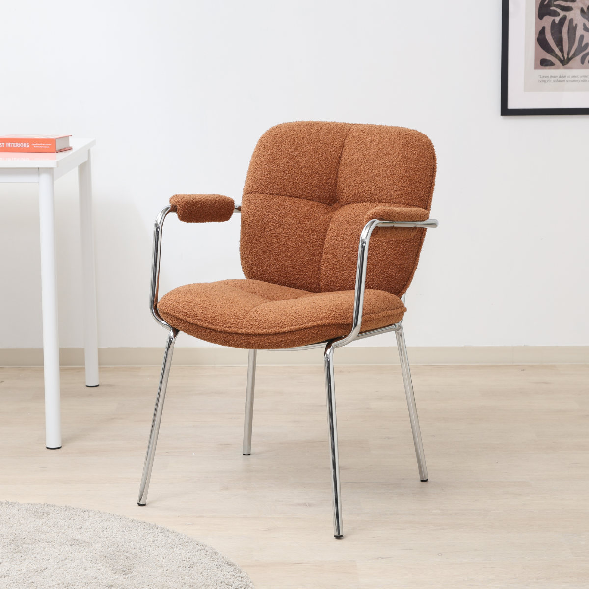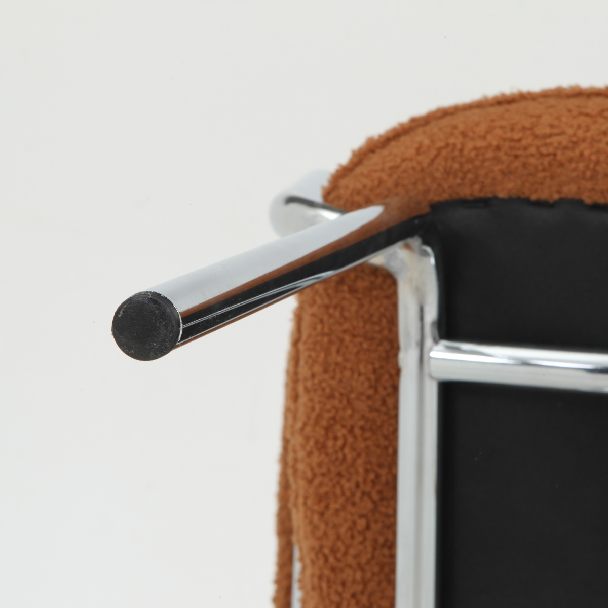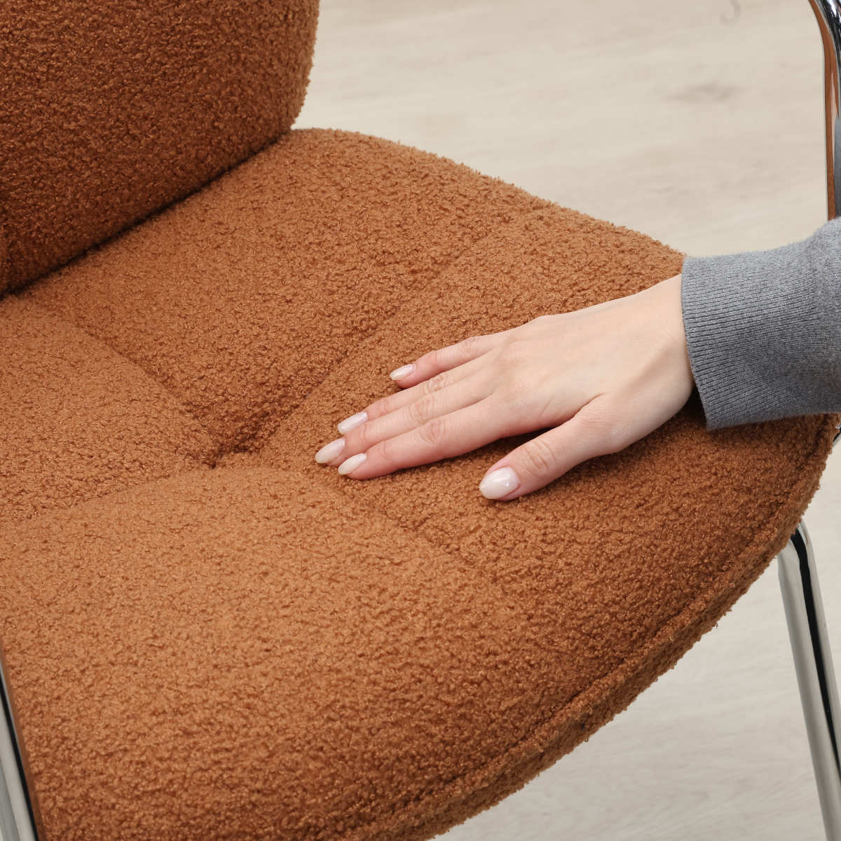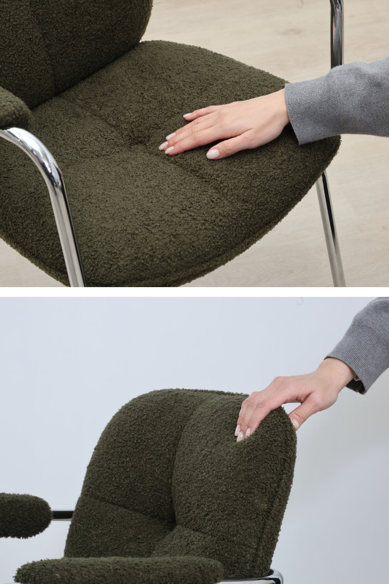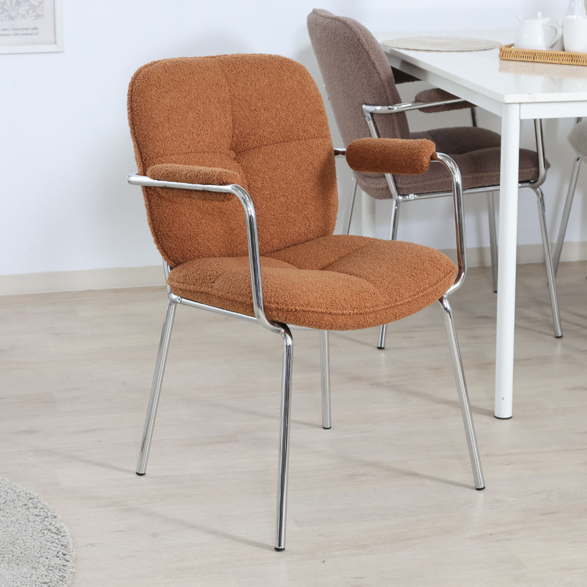 もこもこした肌触りのポリエステル生地とスタイリッシュなシルバーのフレームを組み合わせたおしゃれなダイニングチェアです。触り心地が良く、座るたびに癒されるアイテムです。