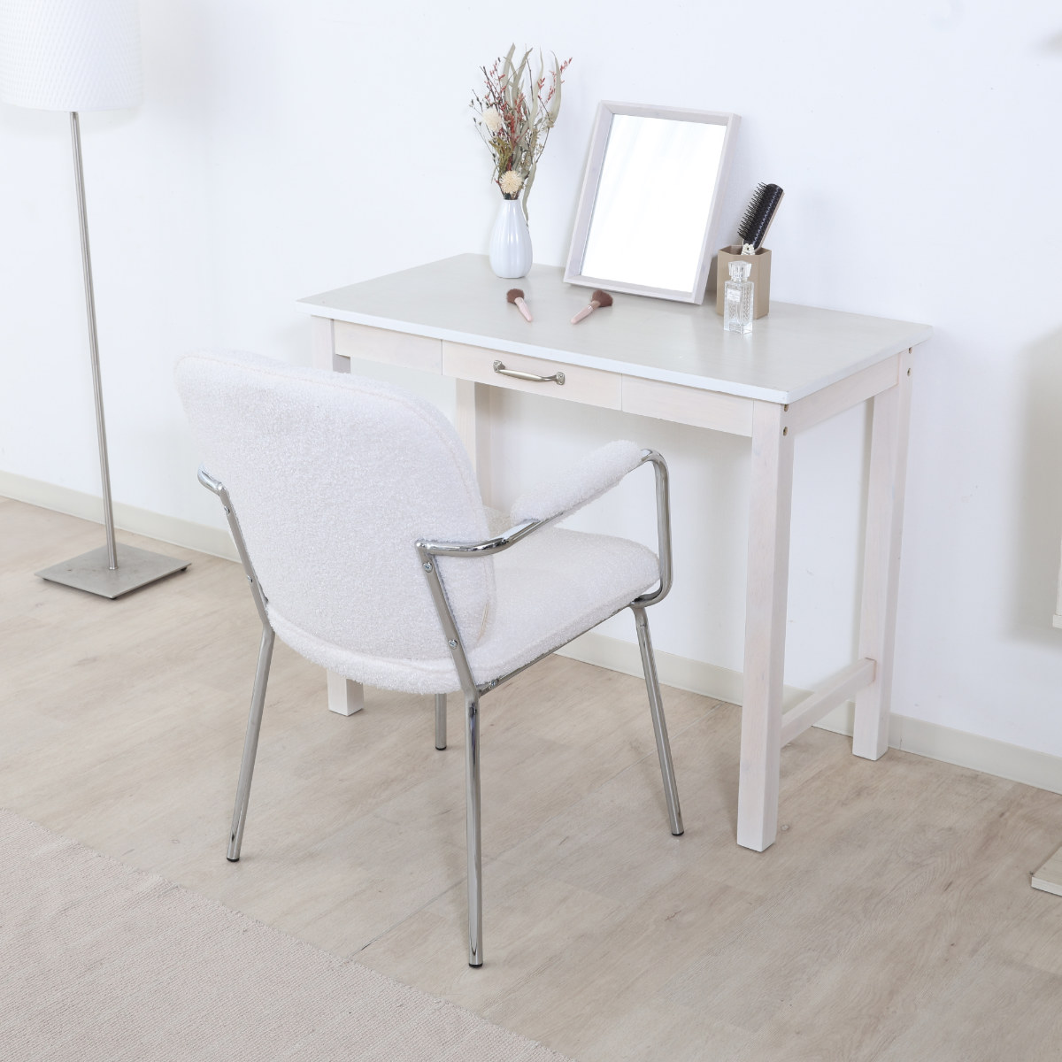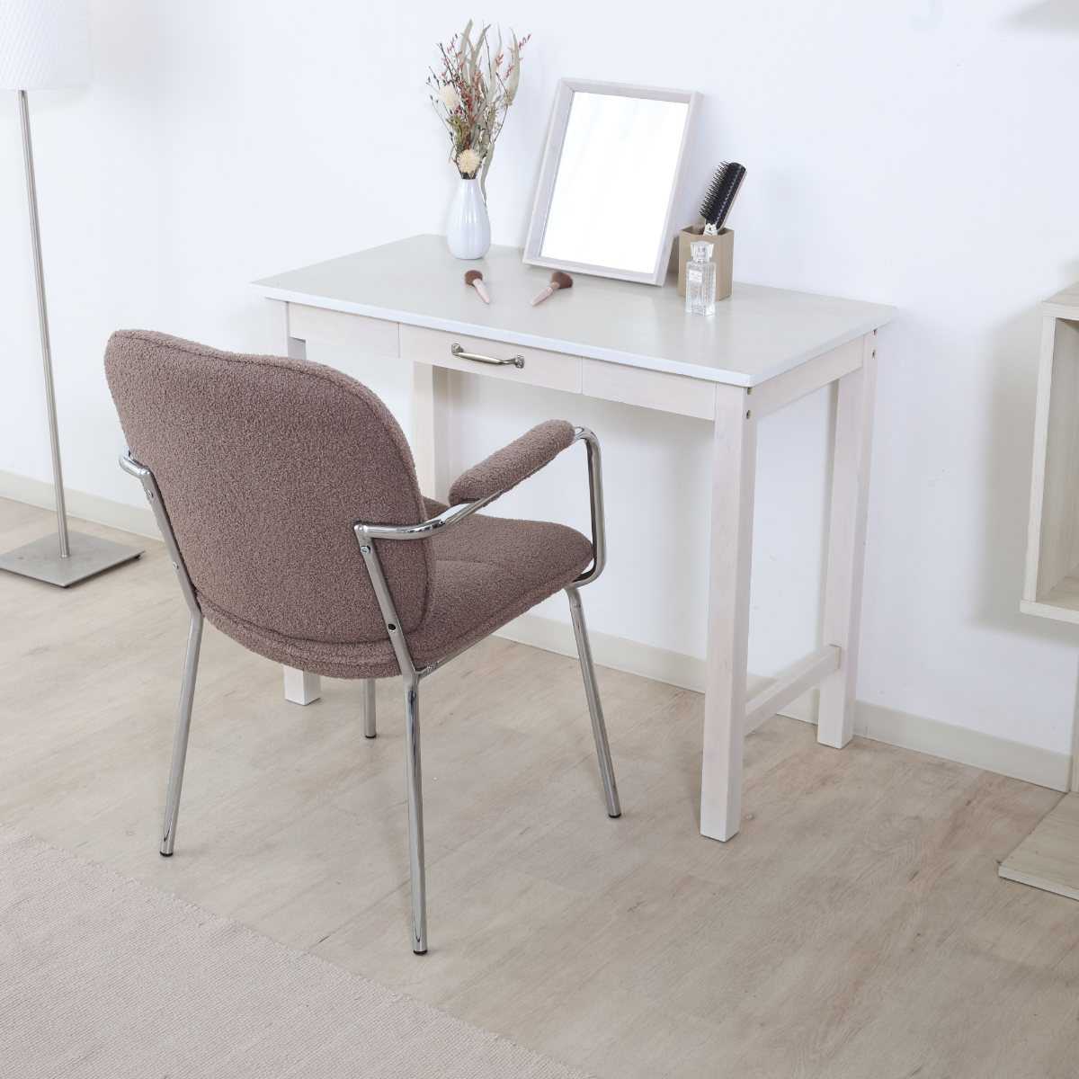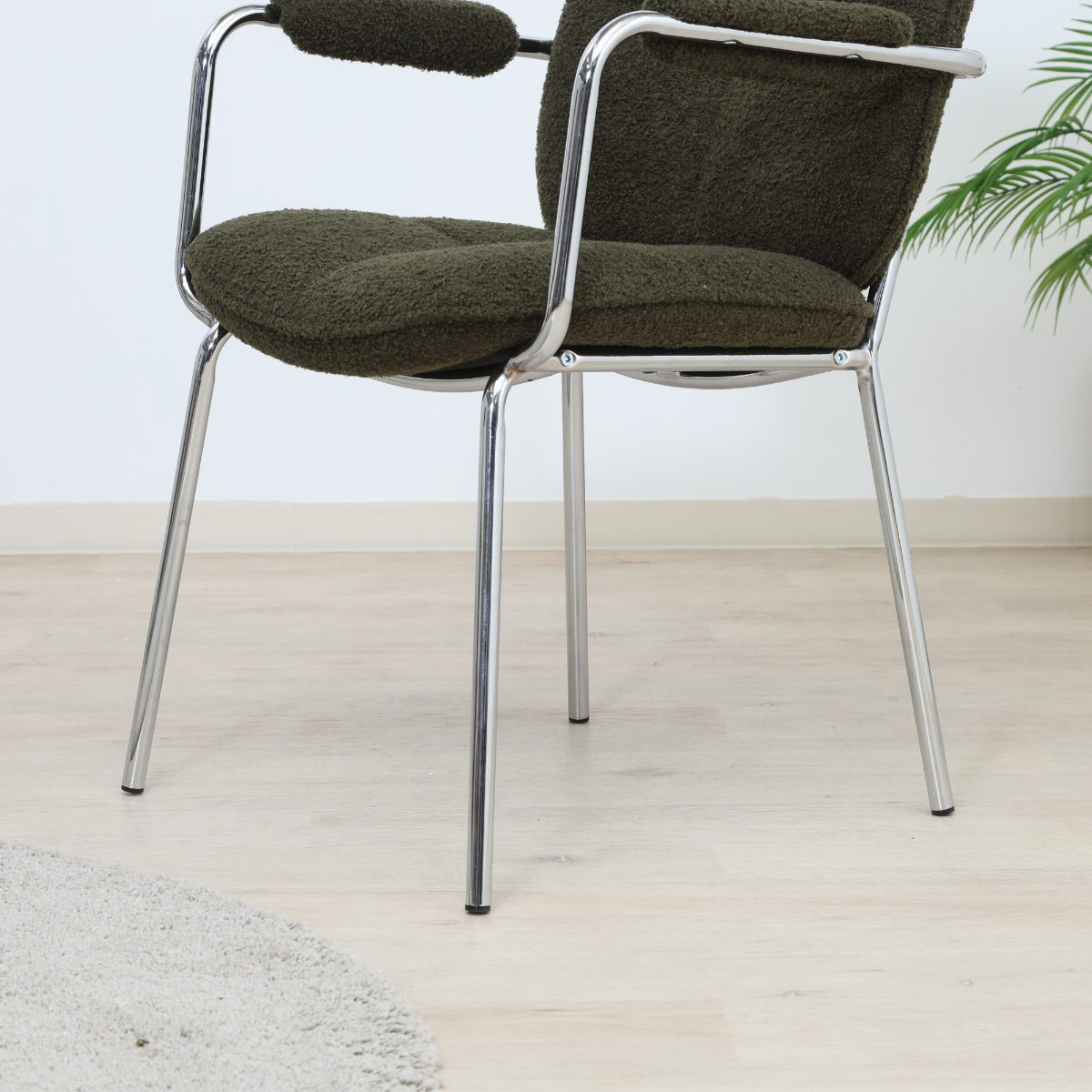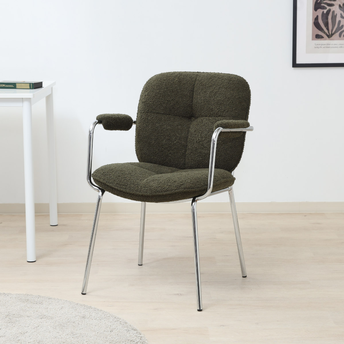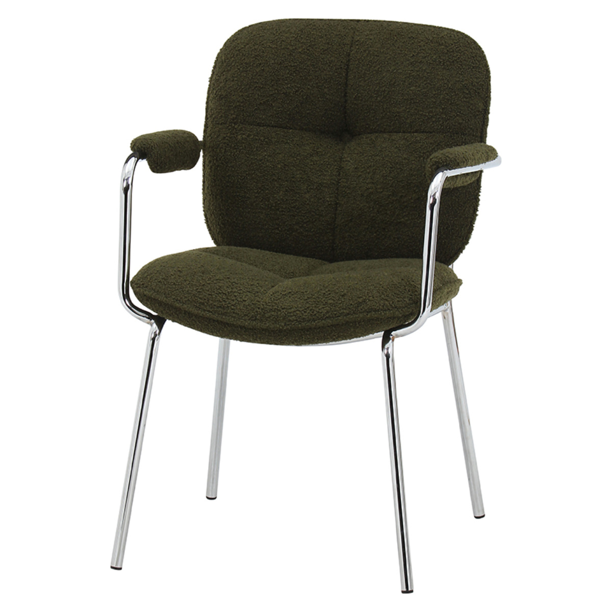 もこもこした肌触りのポリエステル生地とスタイリッシュなシルバーのフレームを組み合わせたおしゃれなダイニングチェアです。触り心地が良く、座るたびに癒されるアイテムです。