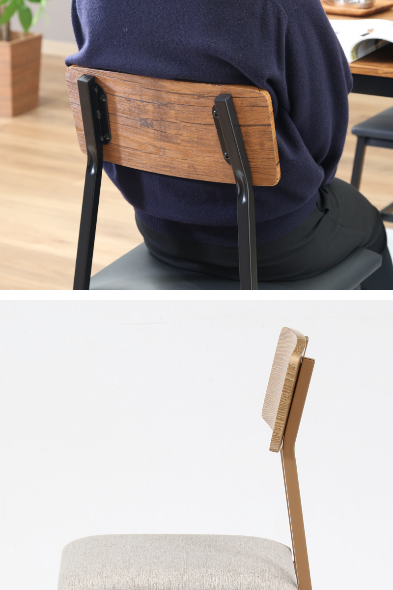 チェアの背もたれは天板と同じカラーリングです。背中に添って少し湾曲しているので、もたれても負担になりにくいです。