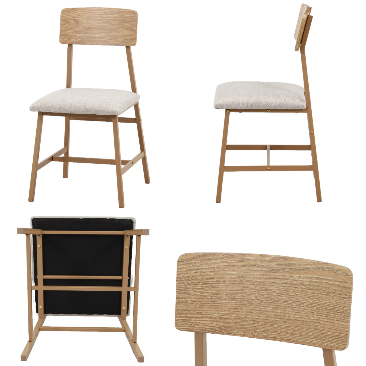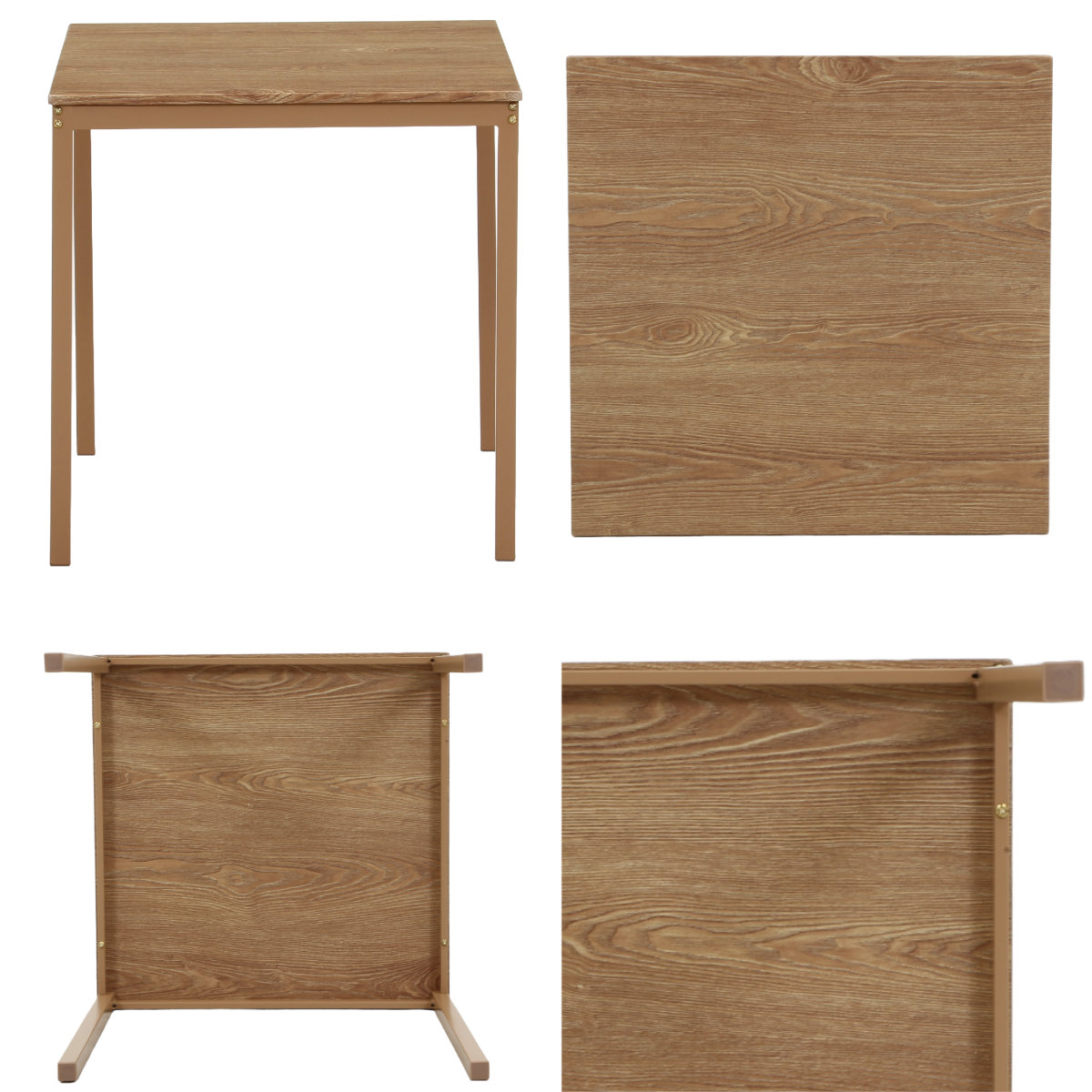| 材質 | テーブル天板:MDF、PVCシート テーブルフレーム・チェアフレーム:金属(鋼) チェア座面:PVC(ビンテージ)、ポリエステル(ベージュ) |