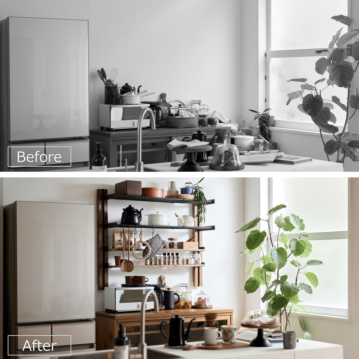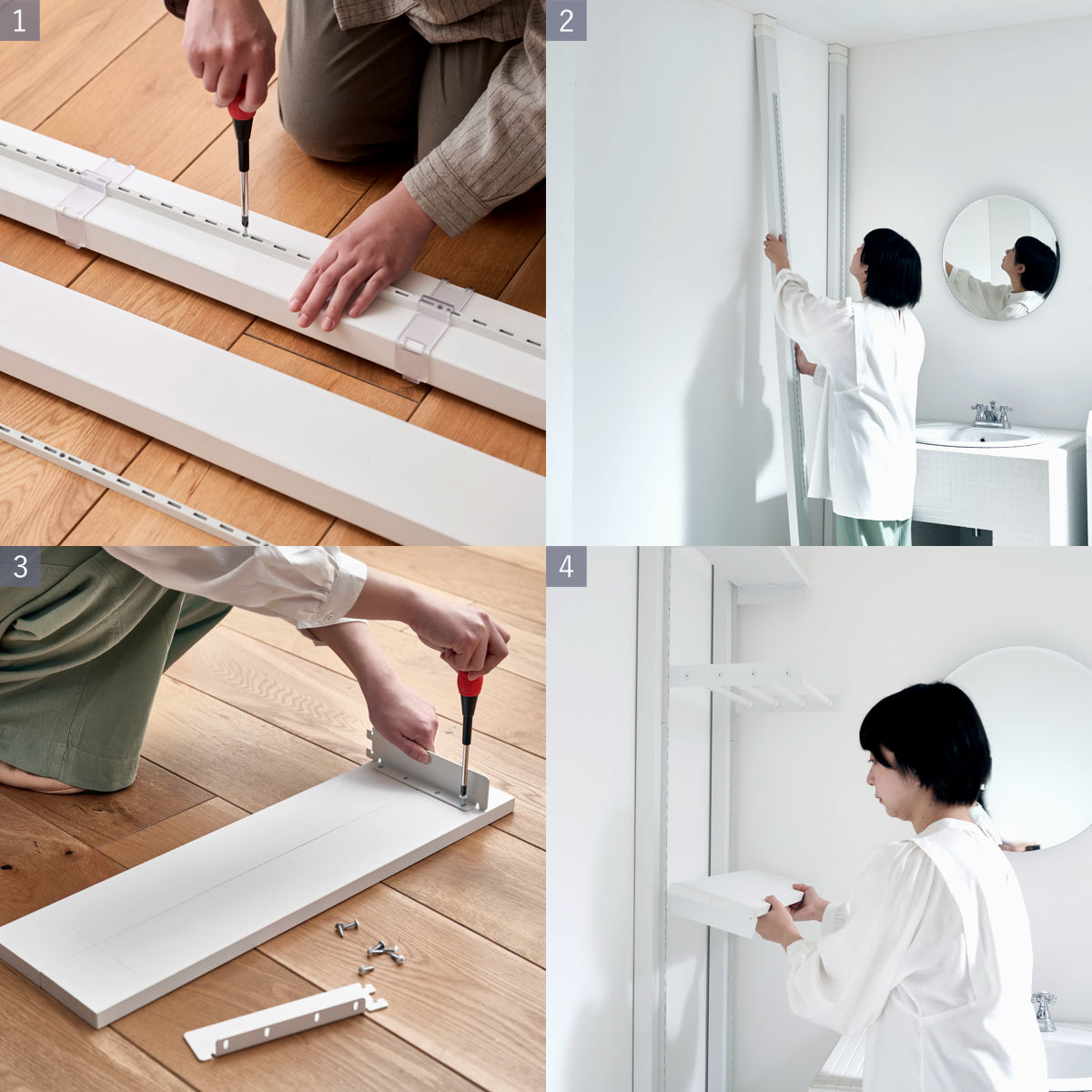 壁を傷付けずにお店のような収納棚を作れる収納パーツ