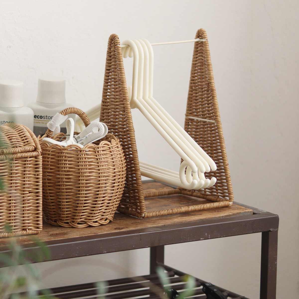 洗濯物を取り込んだ後などに、バラバラになりがちなハンガーをひとまとめに収納できるハンガーストッカーです。ハンガーをまとめておくことで、次のお洗濯の際の時短になります。洗面所やクローゼットなど様々な場所でお使いいただけます。