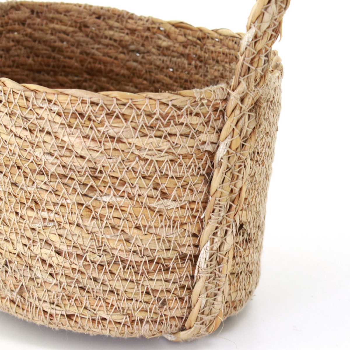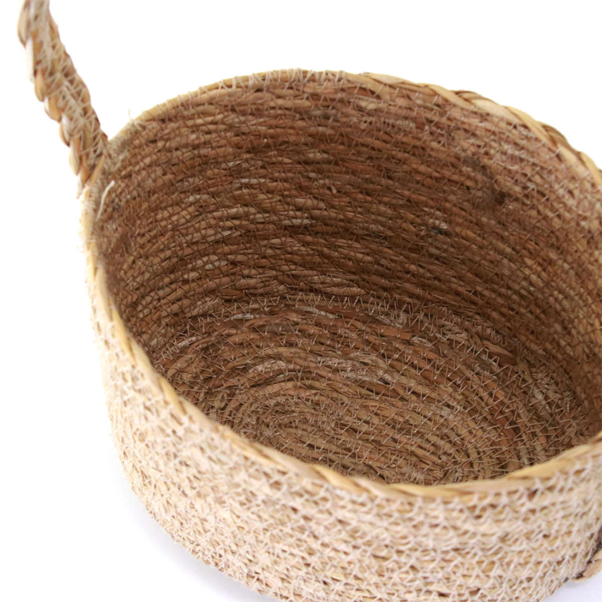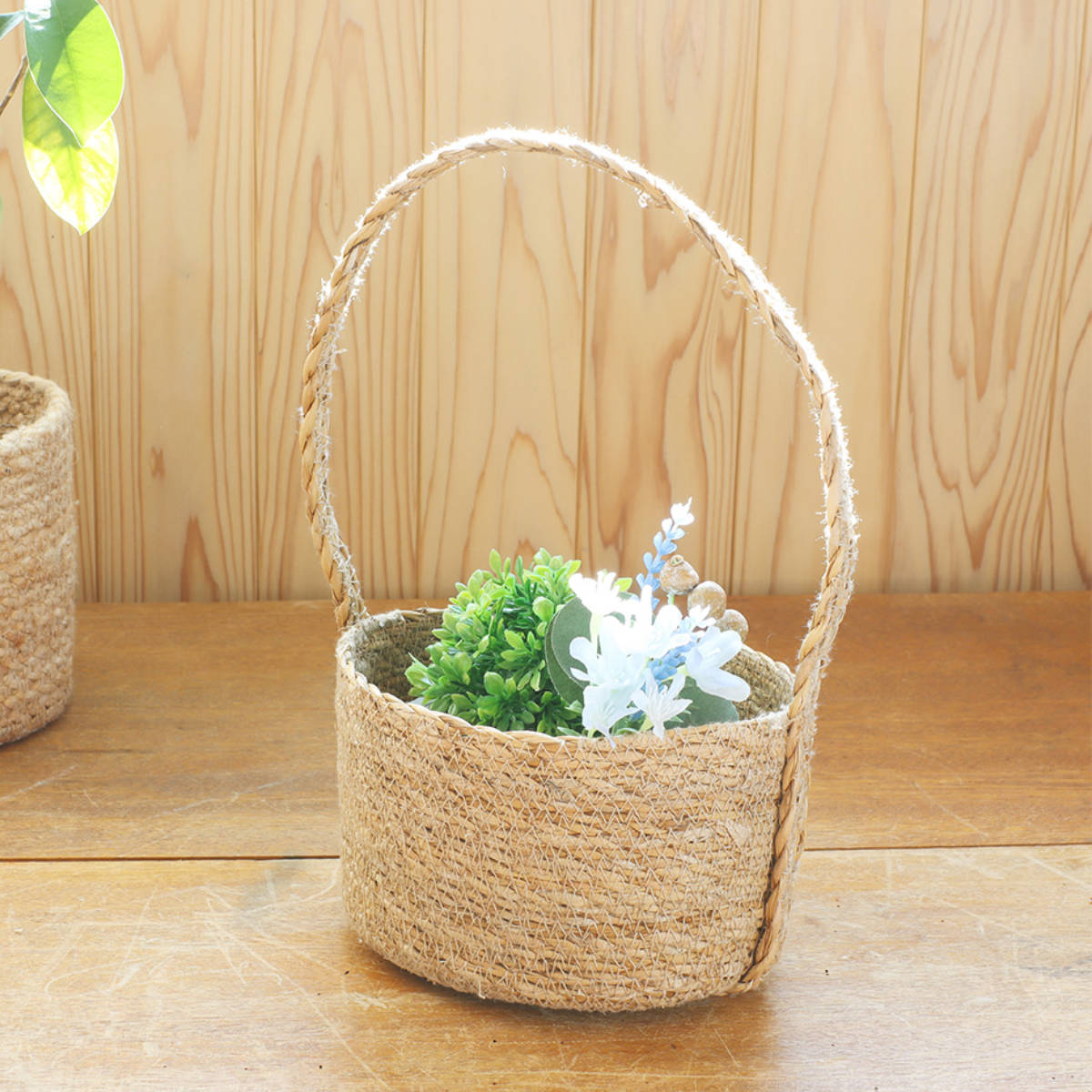 天然素材のシーグラス(水草)で編まれたハンドル付きのバスケットです。シンプルなデザインとナチュラルなカラーが特徴で、温かみのある柔らかい風合いを演出します。小物の収納にちょうど良い大きさで、生活感を隠しておしゃれに片付けることができます。