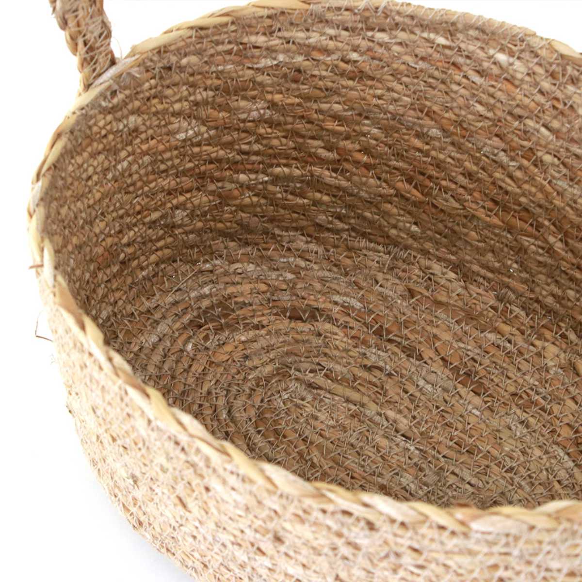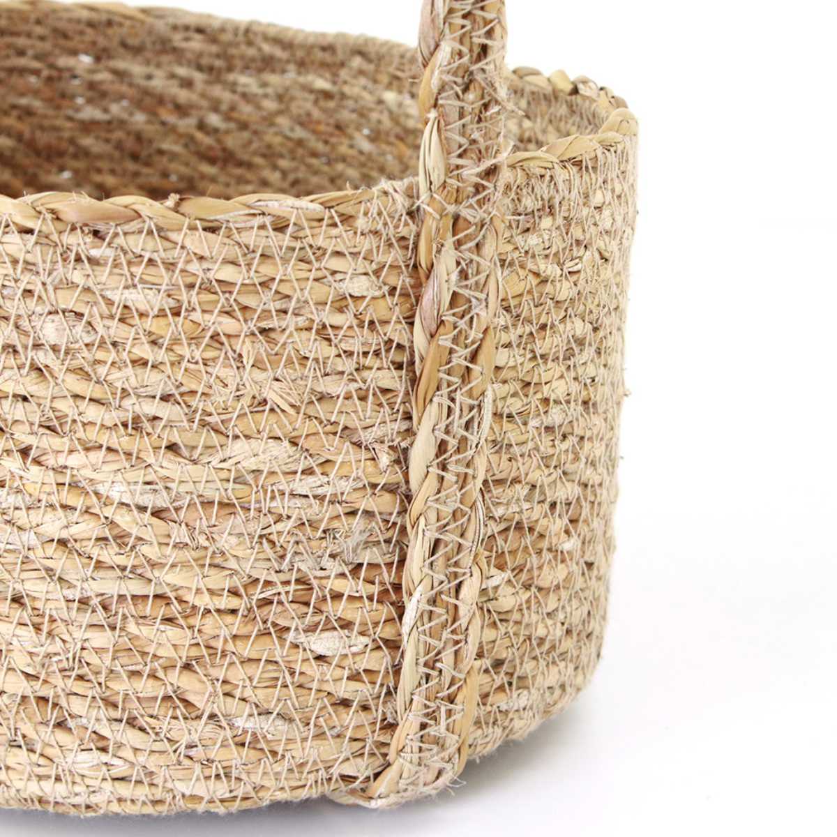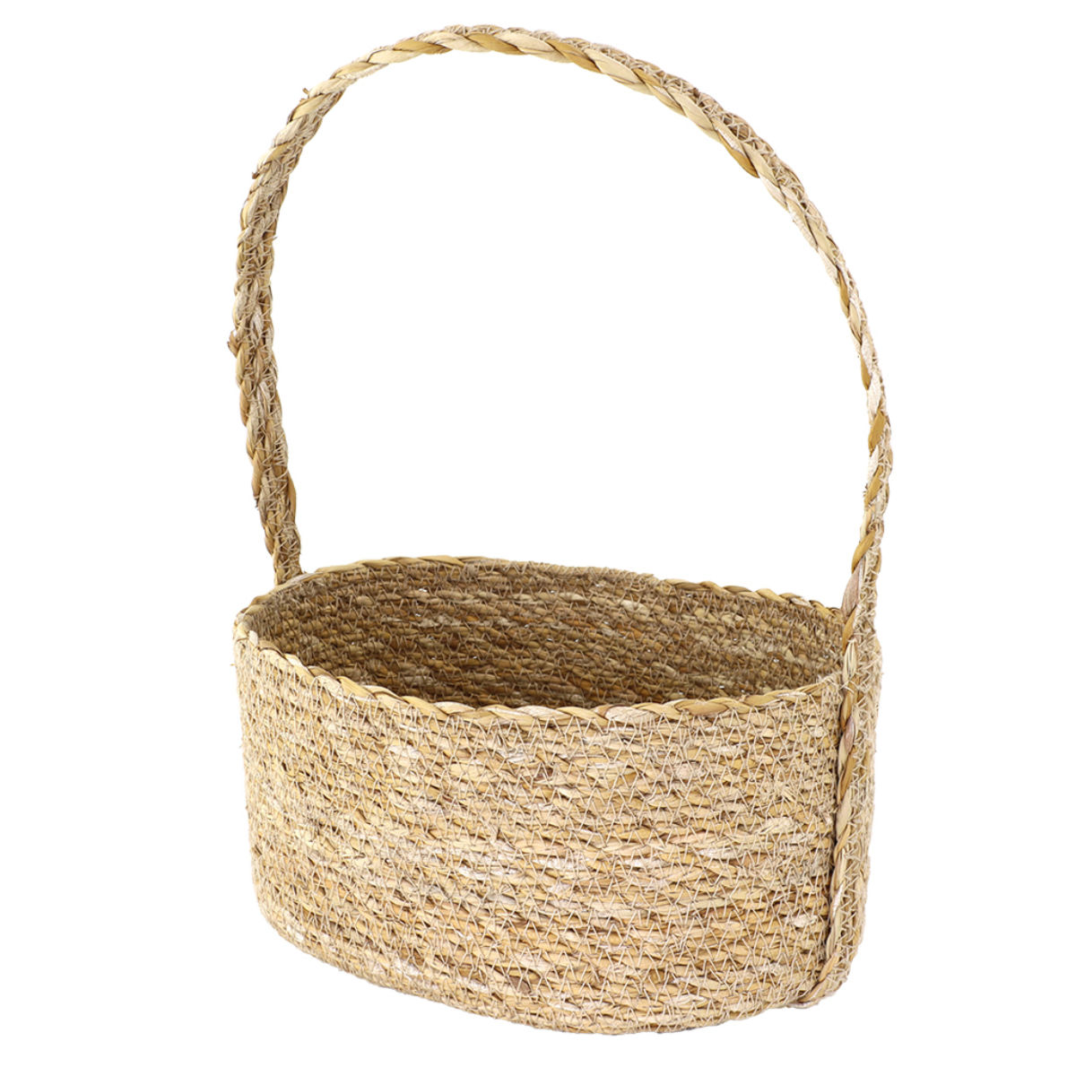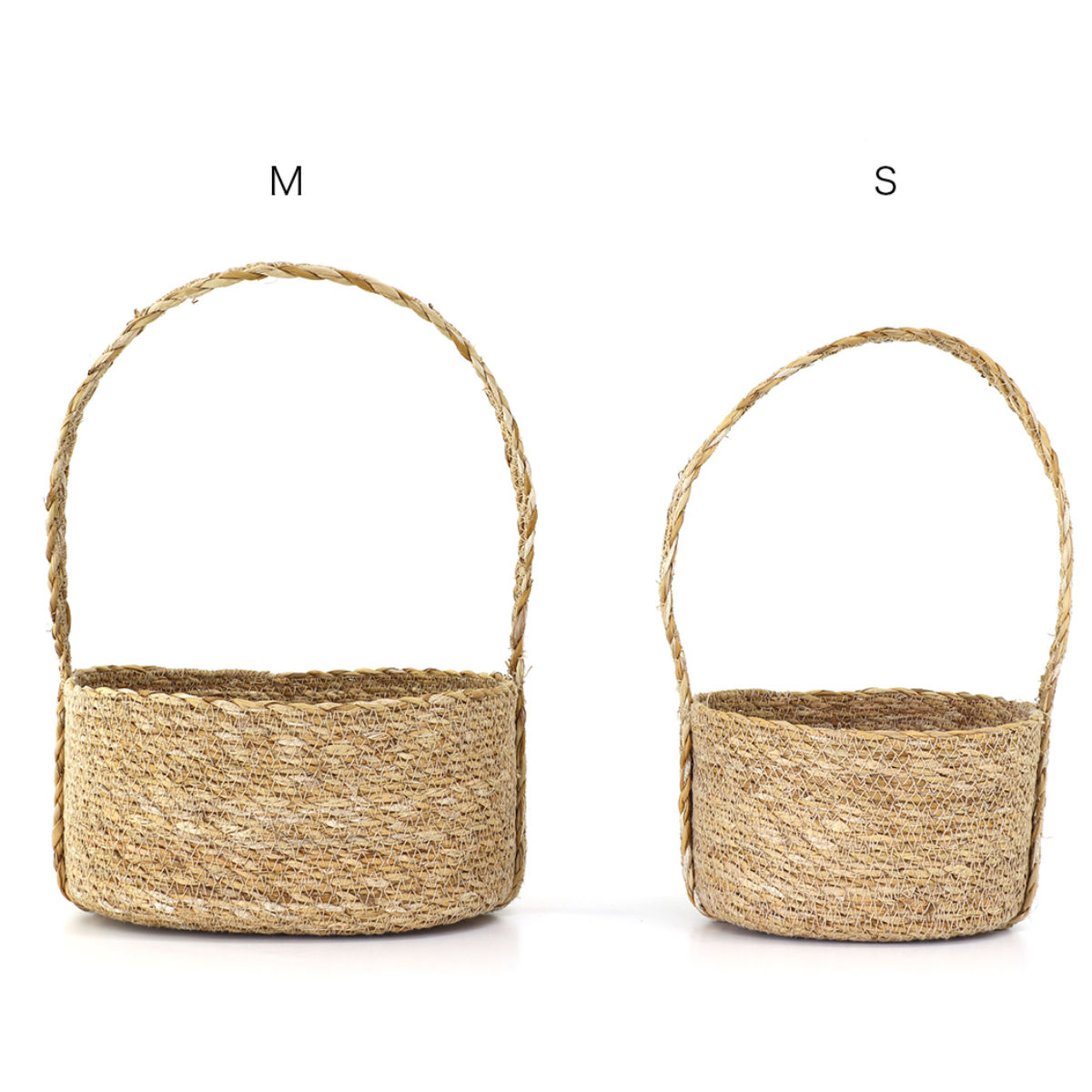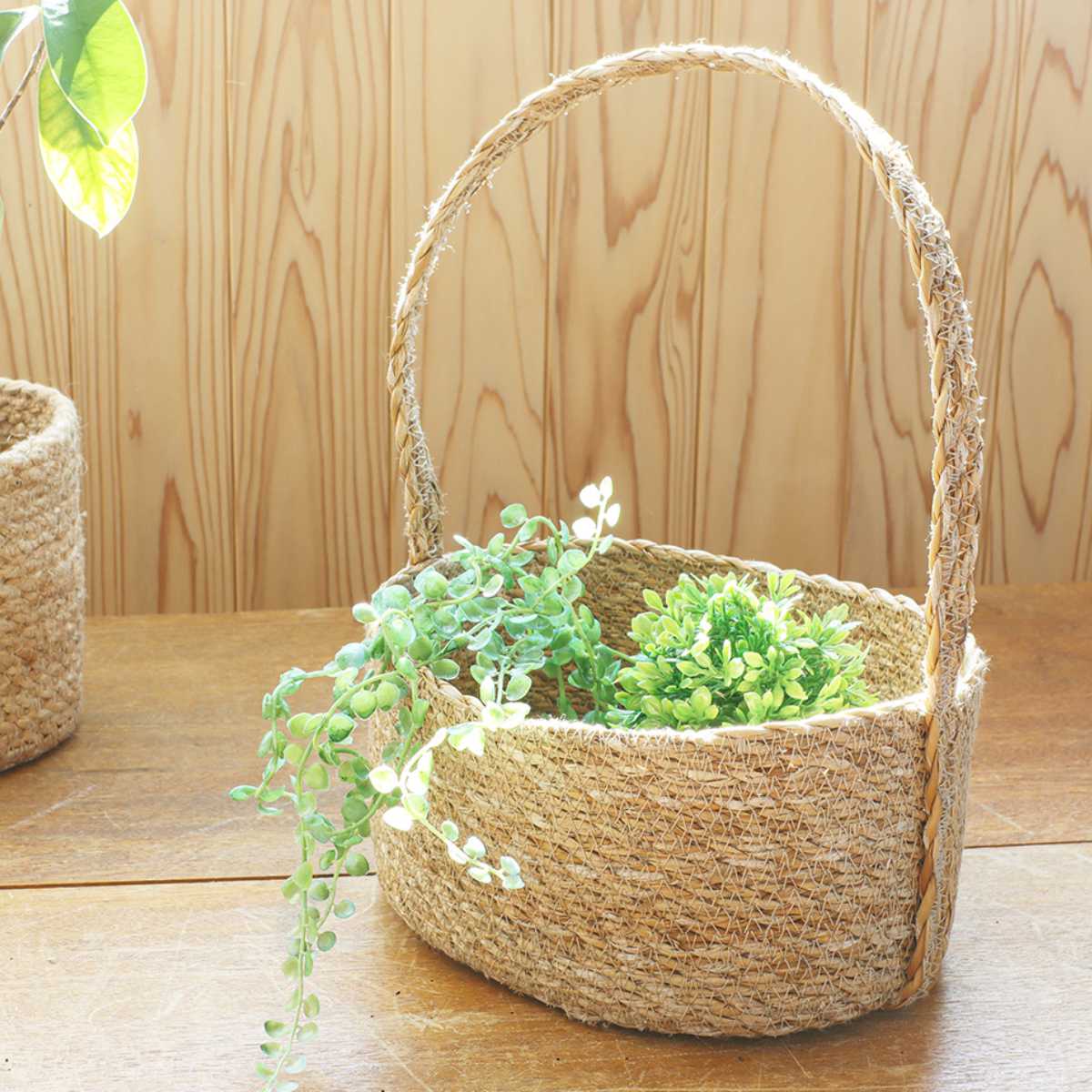 天然素材のシーグラス(水草)で編まれたハンドル付きのバスケットです。シンプルなデザインとナチュラルなカラーが特徴で、温かみのある柔らかい風合いを演出します。小物の収納にちょうど良い大きさで、生活感を隠しておしゃれに片付けることができます。