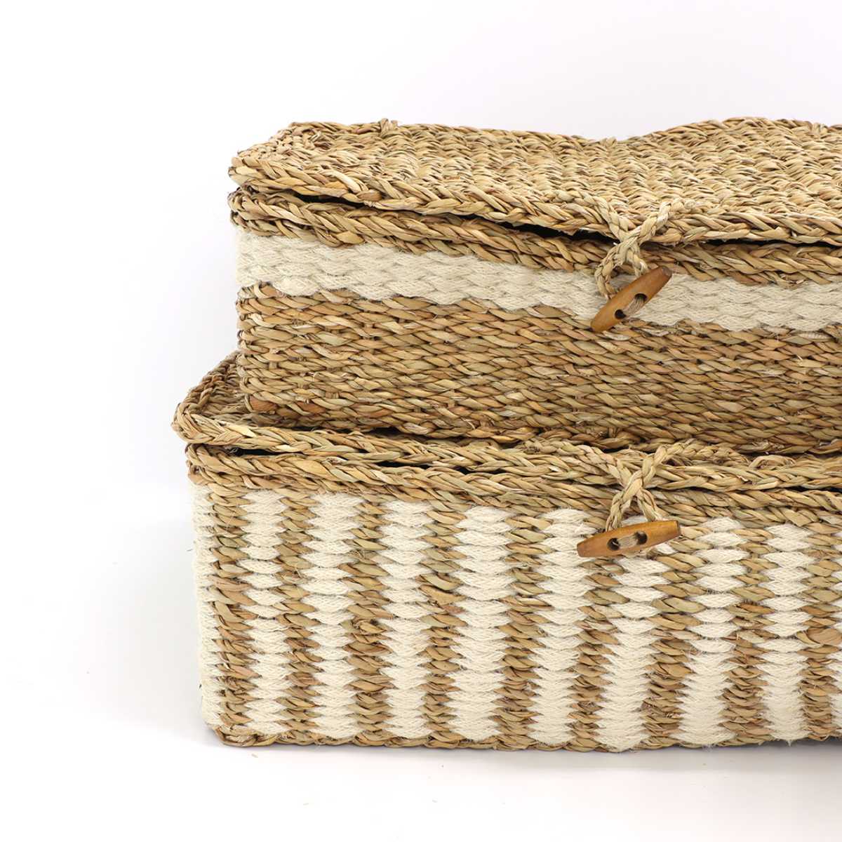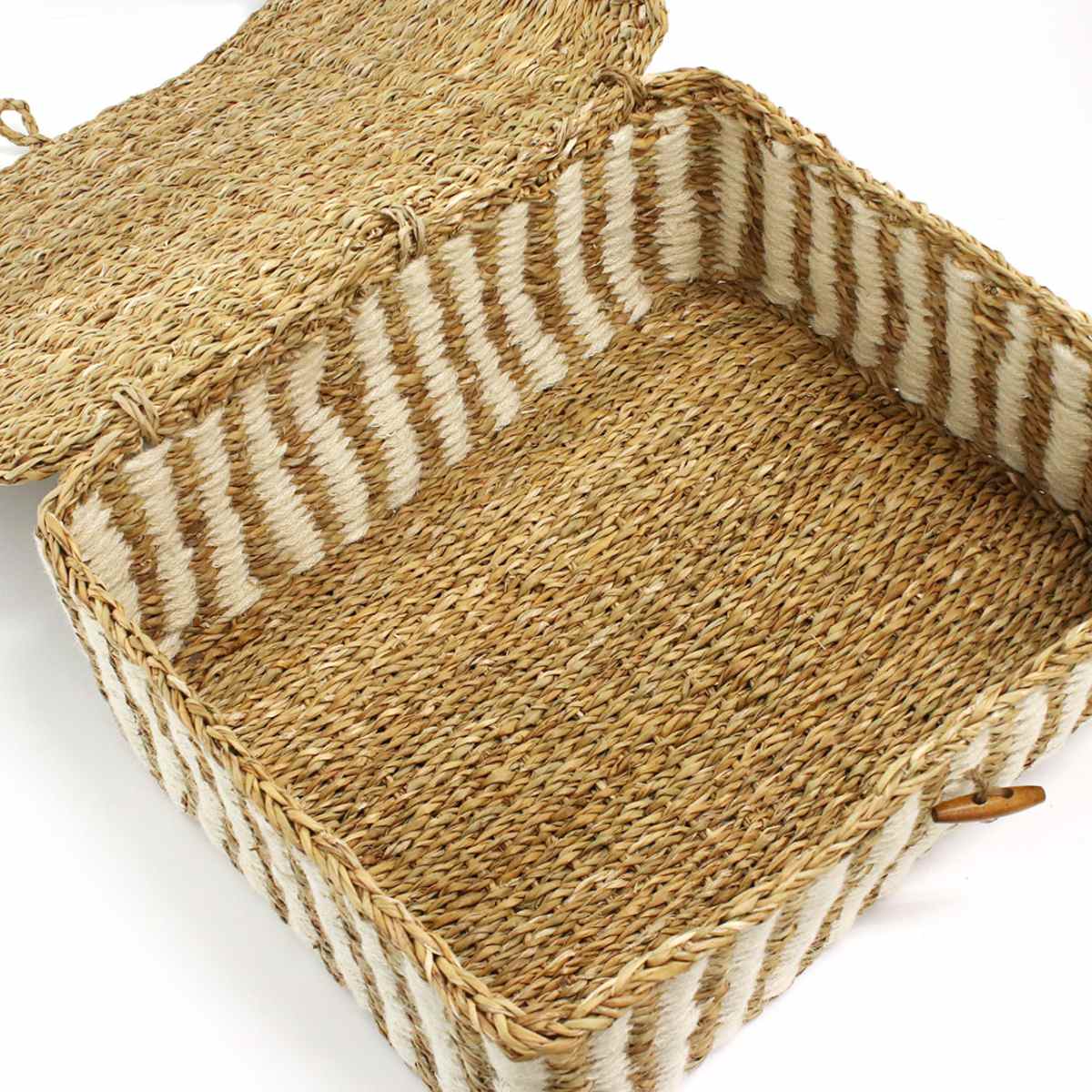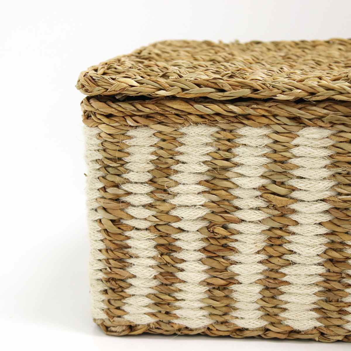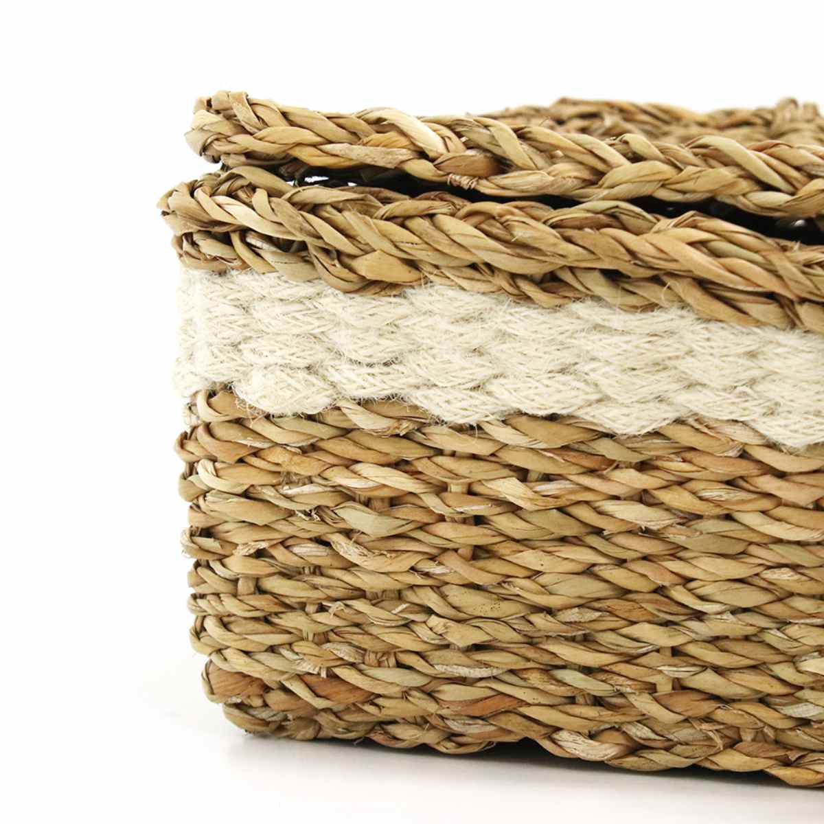 ジュートとシーグラスのコンビネーションが魅力的なバスケットで
