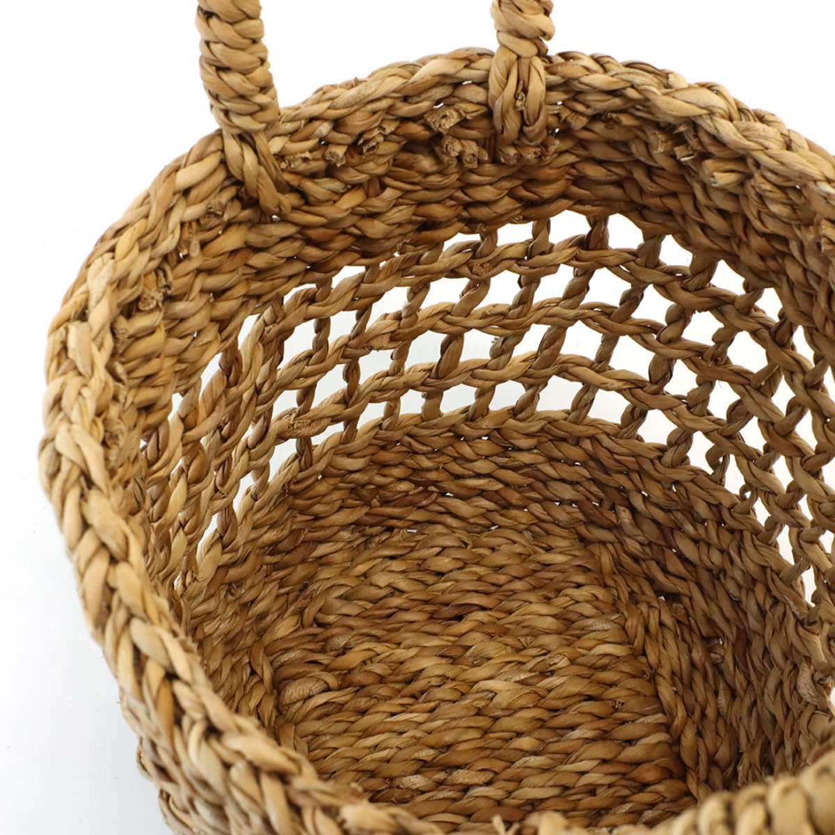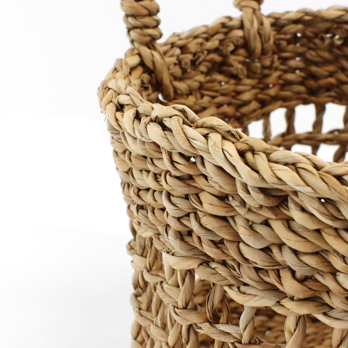 ジュートとシーグラスのコンビネーションが魅力的なバスケットです。天然素材なので通気性がよく、食品ストックや果物の収納にも適しています。雑貨を入れたり、インテリアとして飾ったりと、アイデア次第でさまざまなシーンで活用できます。