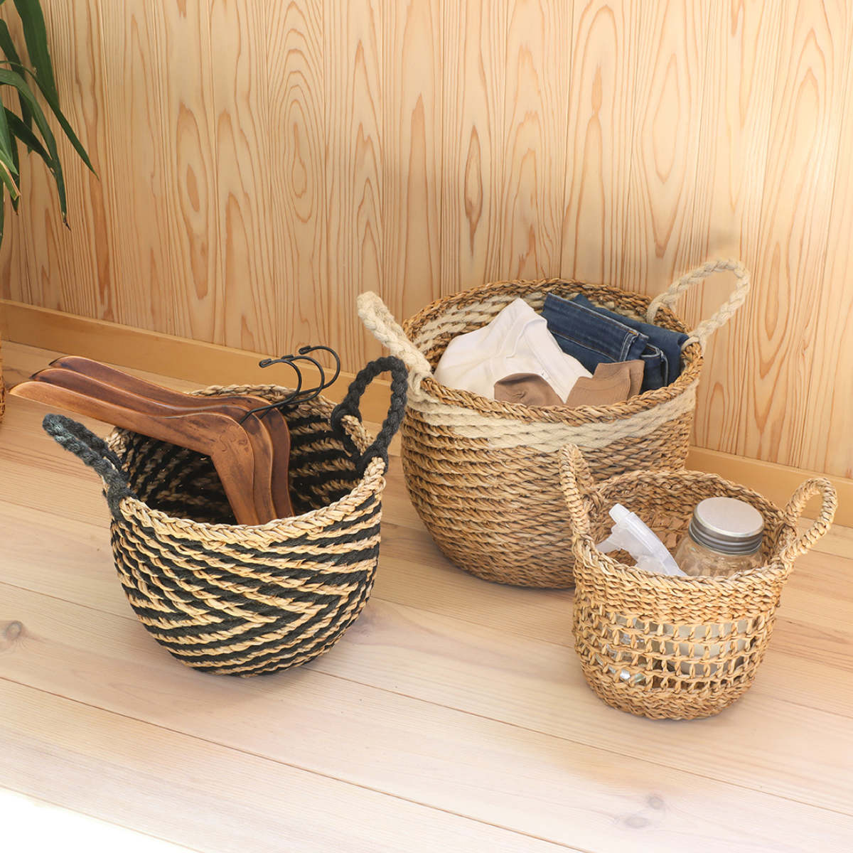ジュートとシーグラスの組み合わせが魅力的なバスケット