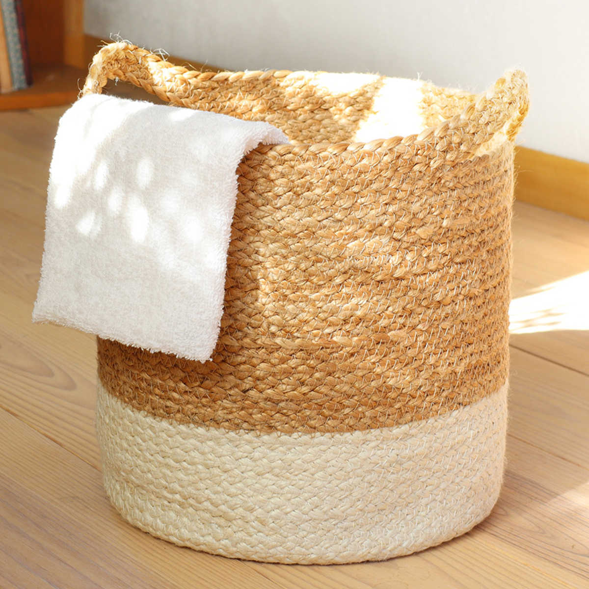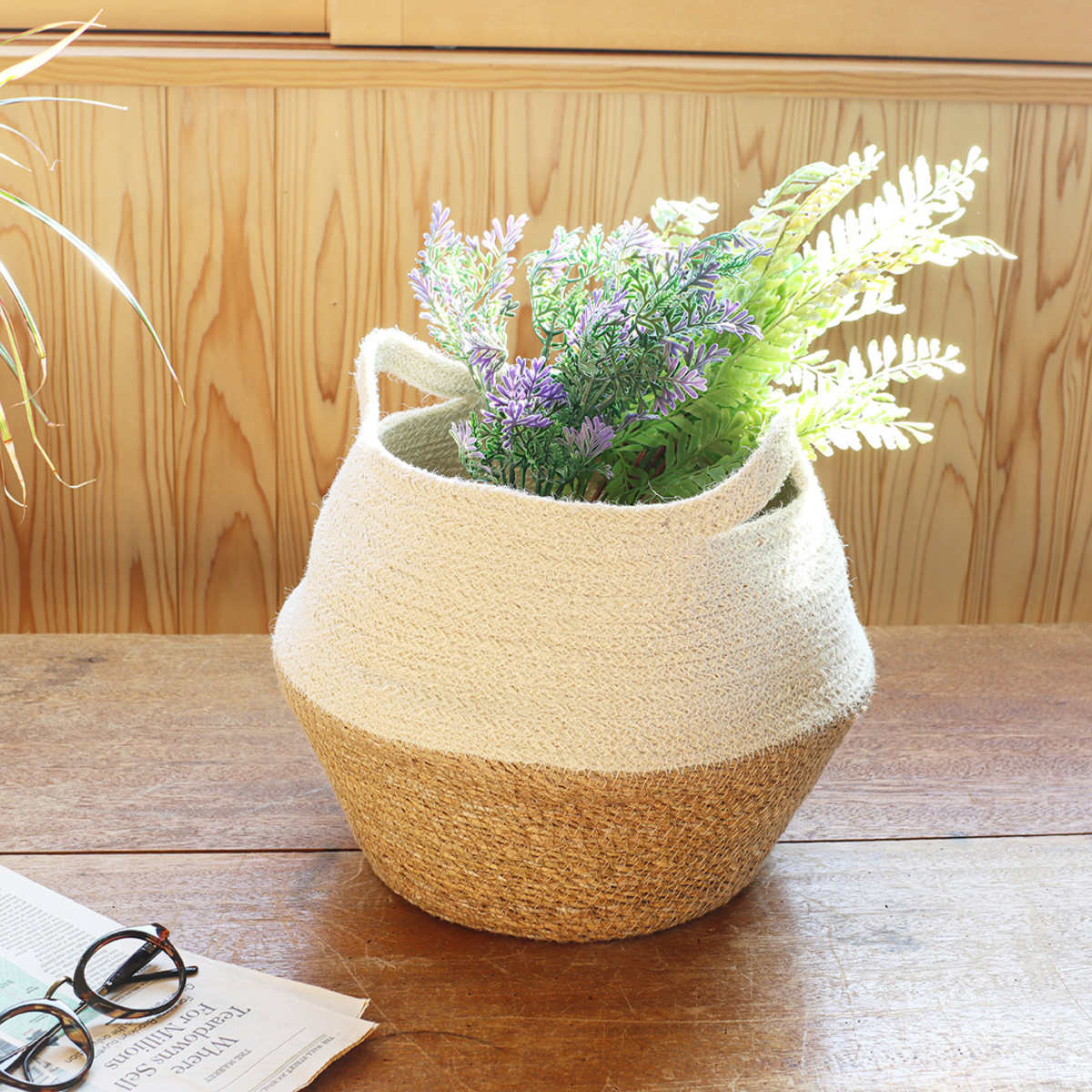 ジュートとシーグラスの組み合わせが魅力的なバスケット
