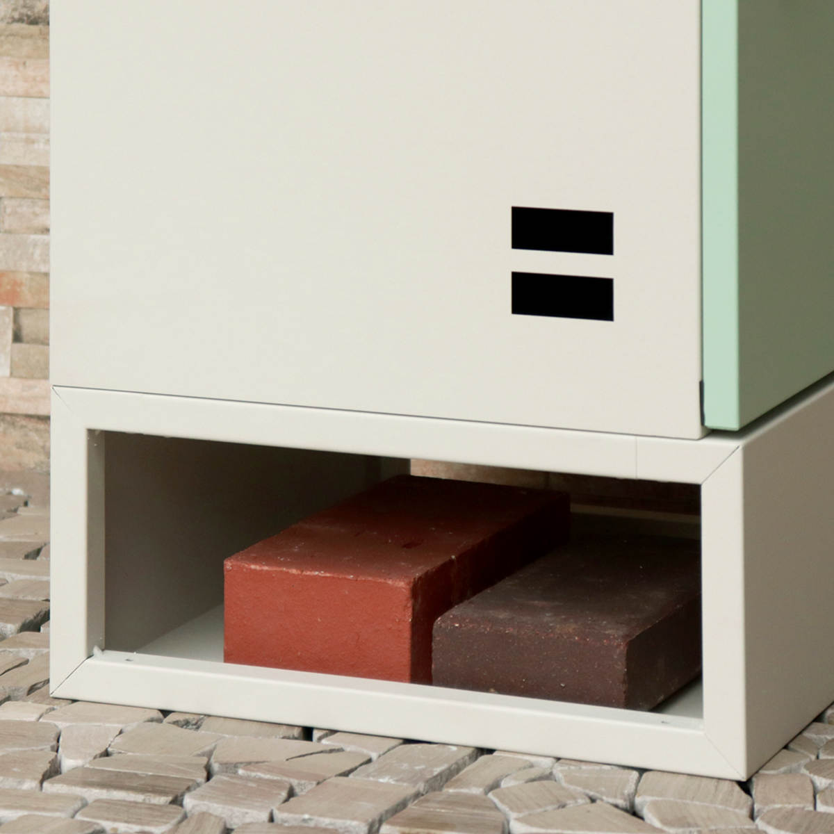 ※台座にレンガなどを入れて重しとして固定するか、地面にアンカーで固定してお使いください。
