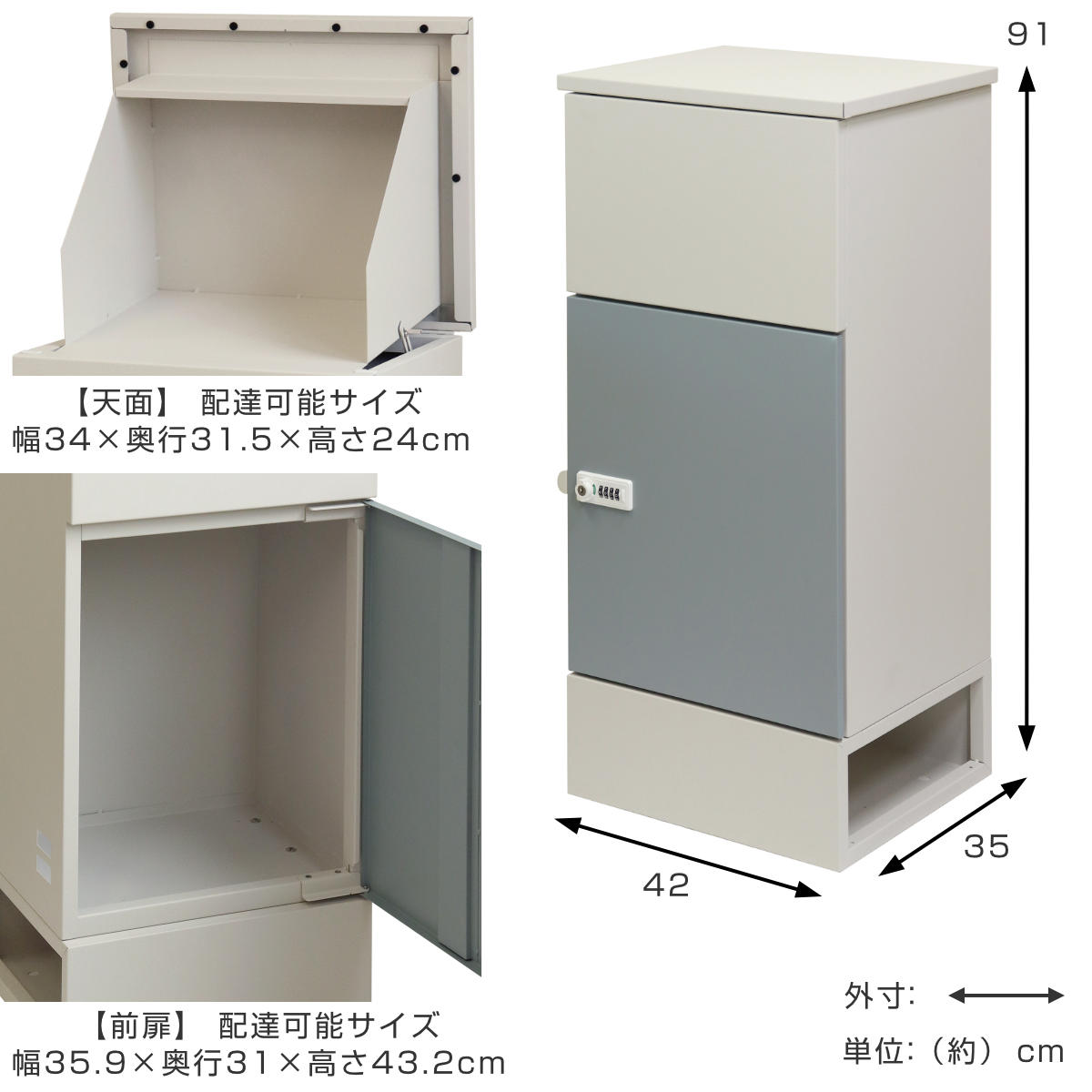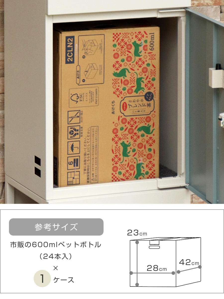 | 内容量 | 1台 付属品:キー、アンカーボルト、キーフック付印鑑ケース、宅配業者用の配達マニュアル、衝撃吸収クッション |
