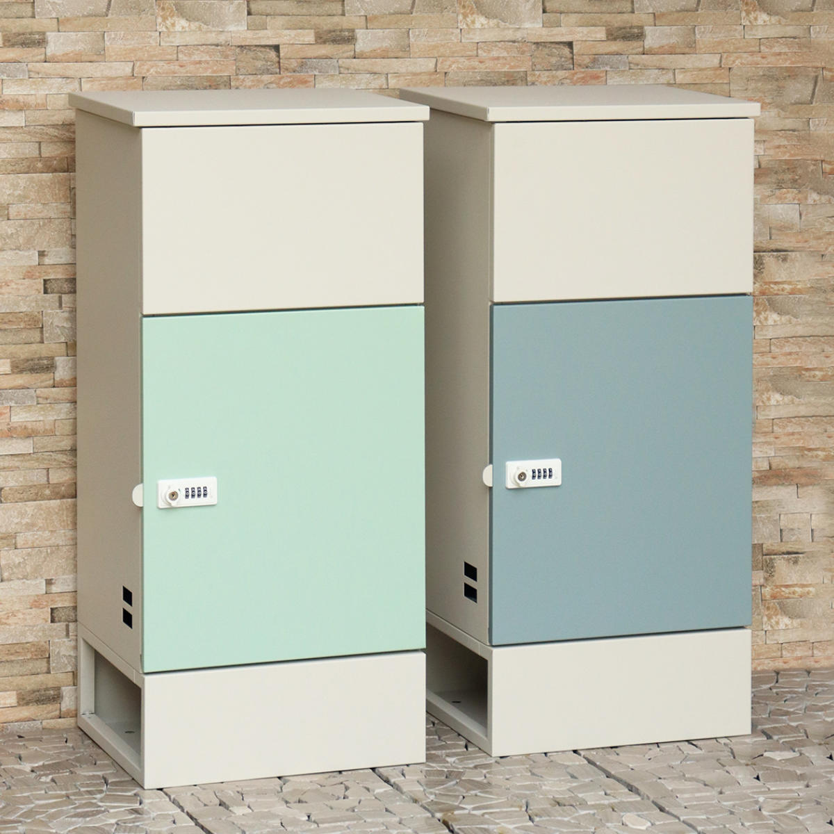 本体はホワイトカラー、扉はパステルカラーの組合せ。落ち着いた色味で可愛くなりすぎず、合わせやすいデザインです。不在時や忙しい時間に荷物の受け取りができるので再配達の負担を減らすことができます。