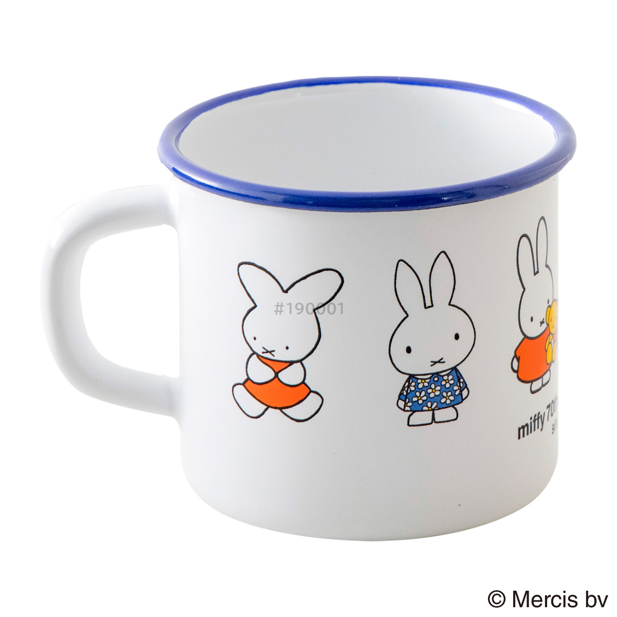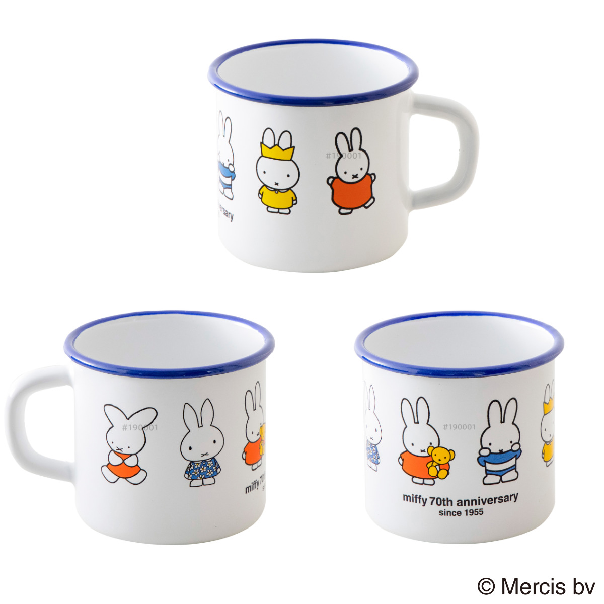 子どもから大人まで人気のミッフィー70周年を記念したデザインで、飾りたくなるようなレトロな雰囲気のあるマグカップです。ホーローの特徴として、飲み物の温度を持続することができ、汚れがつきにくいので衛生的に長くお使いいただけます。