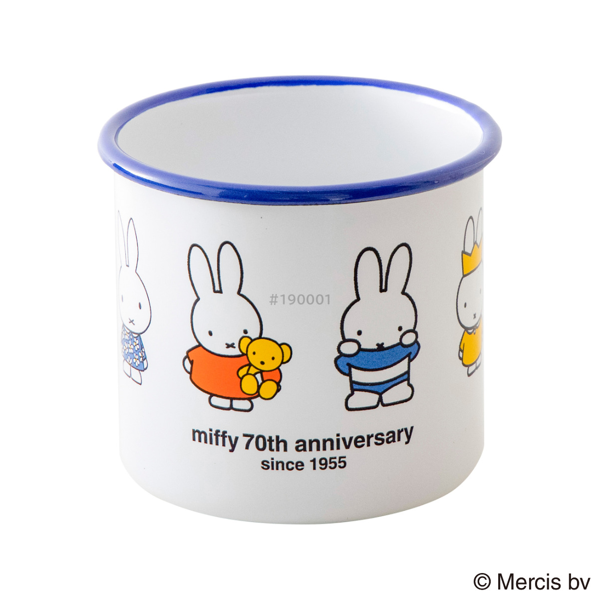 アニバーサリーイヤーを記念して、各年代のミッフィーが並ぶ70周年限定デザインのホーローです。