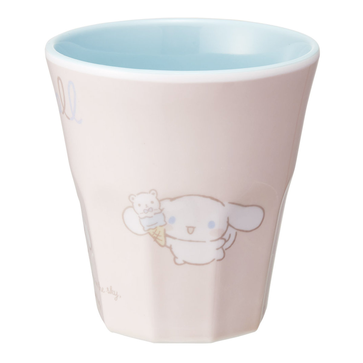 シナモロールの可愛いタンブラーです。メラミン製なので軽くて衝撃に強く、落としても割れにくいのでお子様にもおすすめです。
