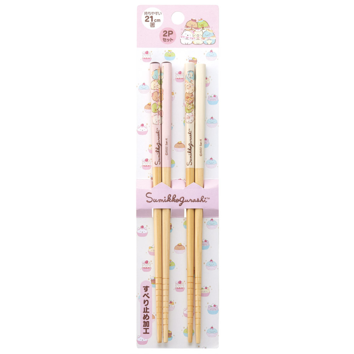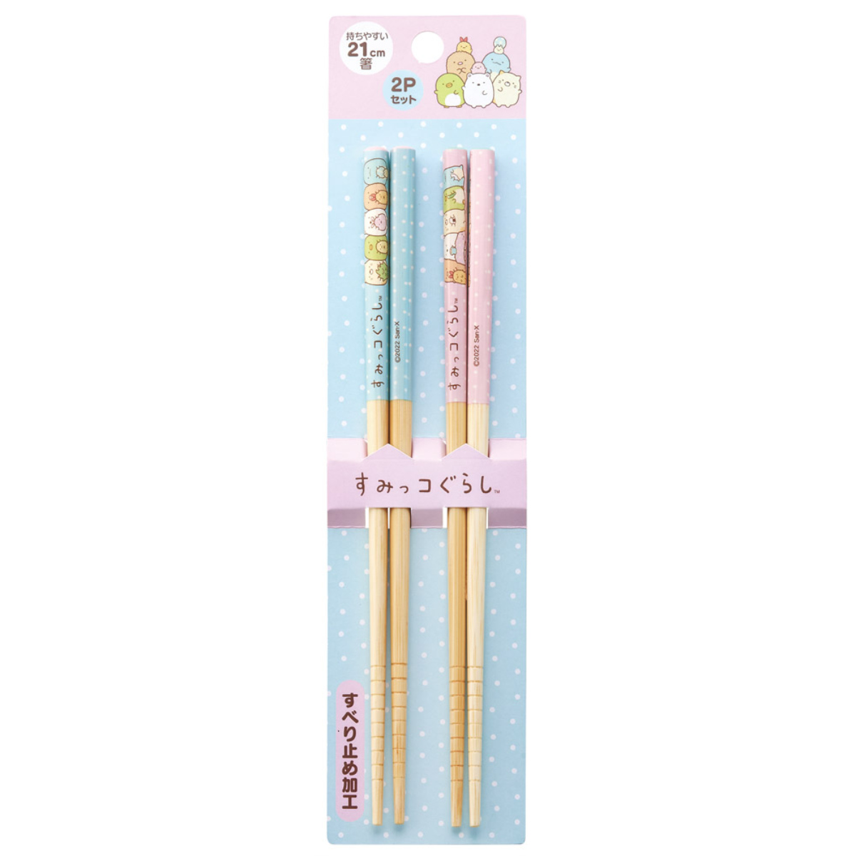 すみっコぐらしの竹製お箸、2膳セットです。大人でもお子様でも使いやすい21cmサイズです。