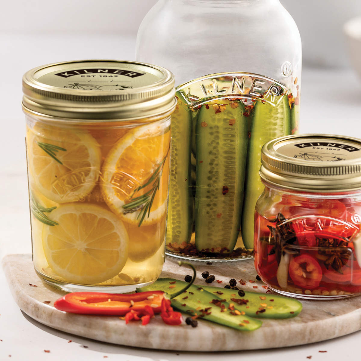 KILNERの保存瓶は、食材や用途に合わせて選べる豊富なサイズ展開です。単体での使用はもちろん、種類別で複数使いすれば、キッチンが整って統一した空間が生まれます。透明で中身が一目で分かるので、複数を並べても使いたい時にすぐに手に取れます。