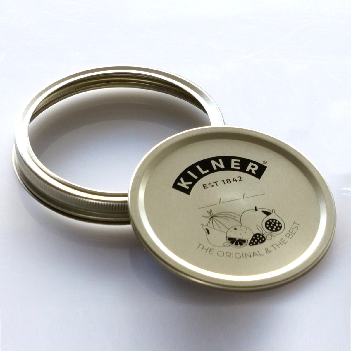 フタはリッドシールとスクリューバンドの2つに分かれる、ダブルキャップ仕様です。リッドシールを乗せてスクリューバンドでしっかり留めることで、密閉性を高められ、長期保存に適しています。(完全密閉ではありません)