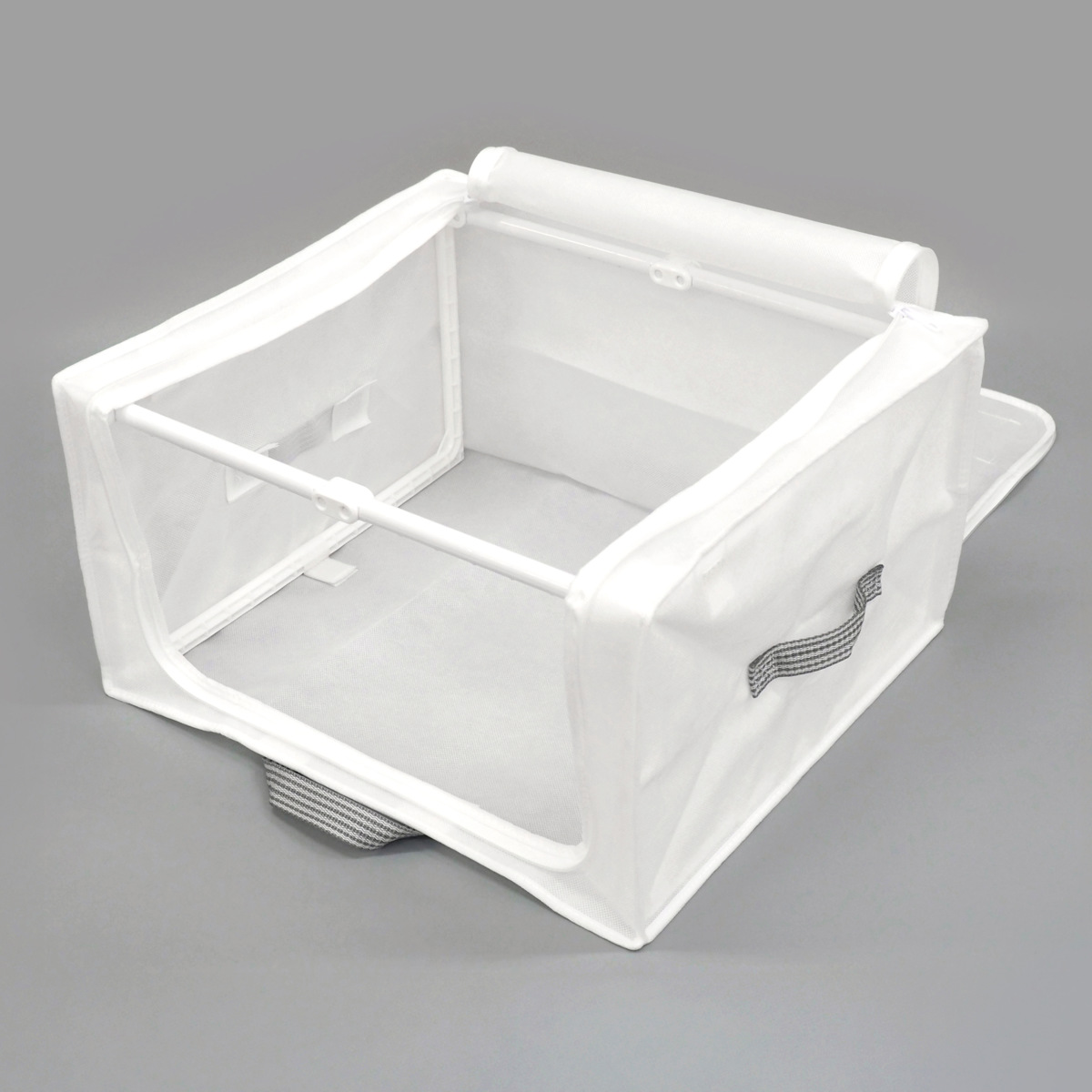 収納袋とフレームは取り外しが可能です。使わない時は折りたたんでコンパクトに収納しておくことができます。家具の隙間などのちょっとしたスペースで保管ができるので、余計な場所を取りません。
