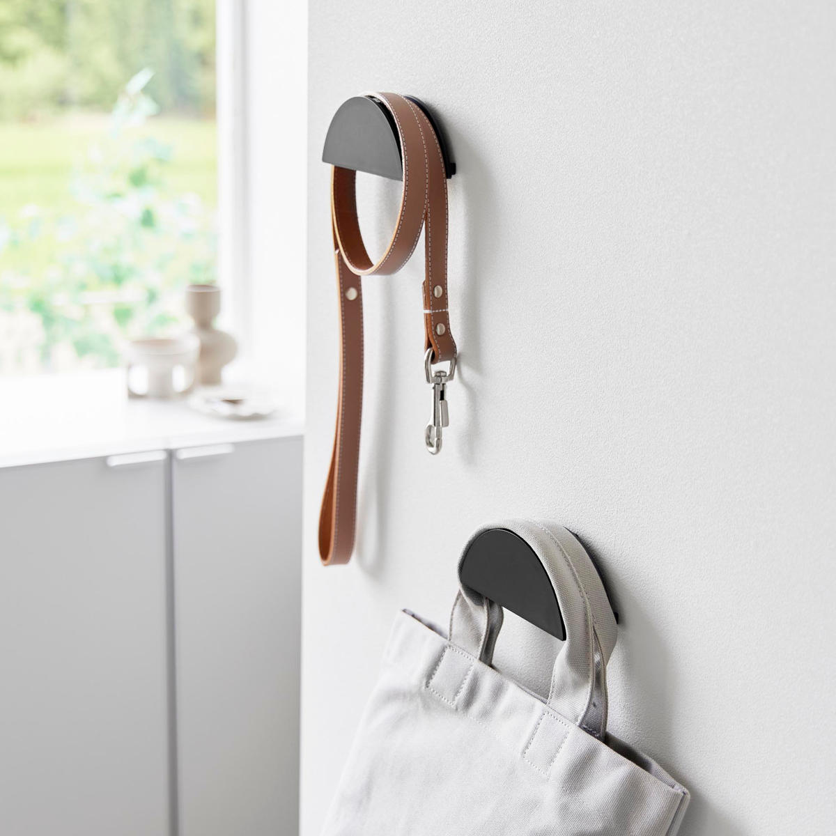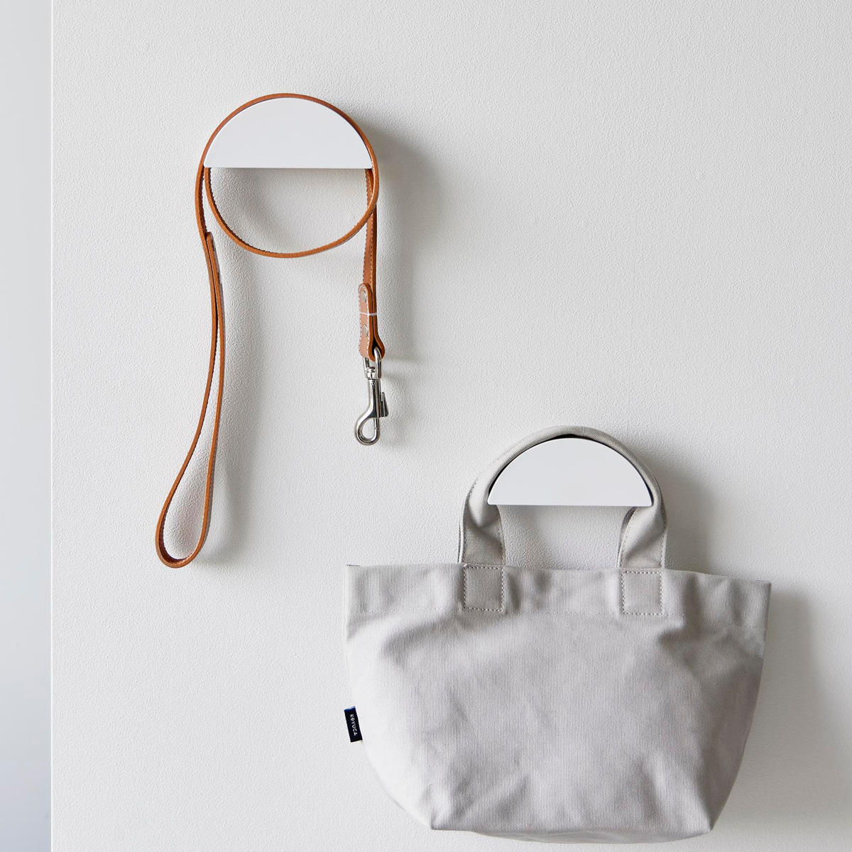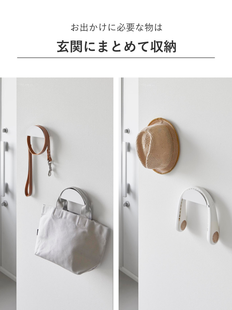 お出かけの時によく使う帽子やヘッドホンの収納場所として玄関への設置もおすすめです。ペットのお散歩グッズを掛けることもできる便利な2個組の販売です。