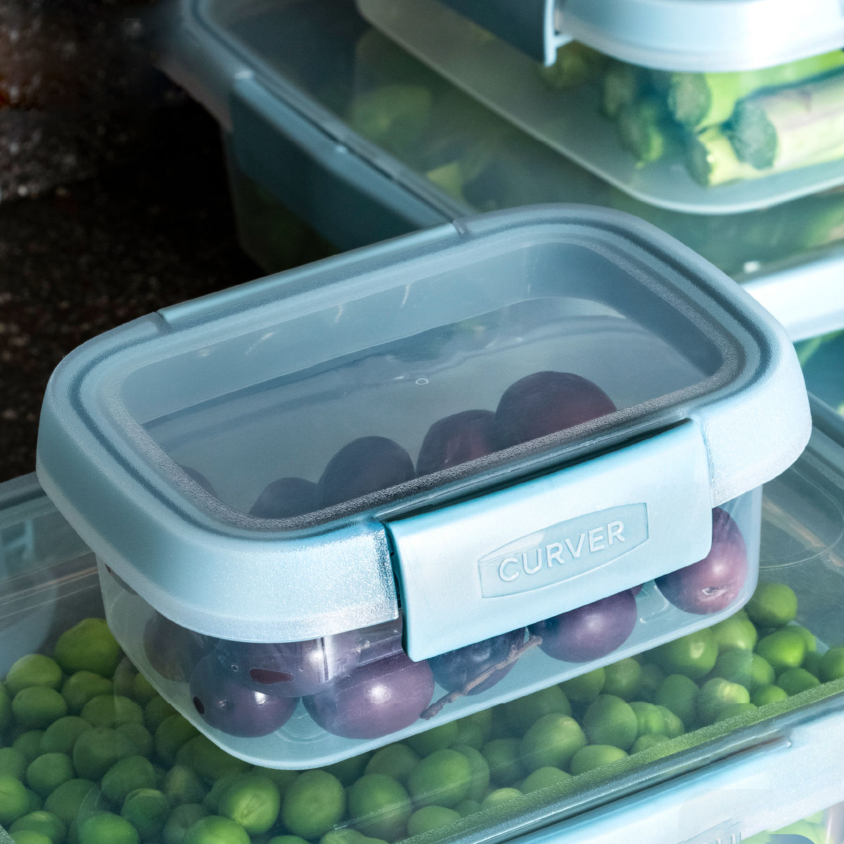フタも容器も透明で、上からも横からも中身を確認できます。どこに何が入っているのか一目でわかり、野菜やくだもの、作り置きのお料理などが迷子になりません。