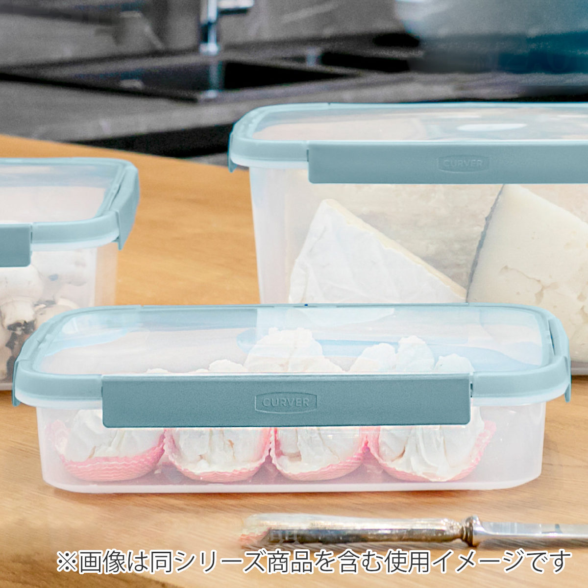 フタも容器も透明で、上からも横からも中身を確認できるフードキーパー、容量2Lです。どこに何が入っているのか一目でわかり、野菜やくだもの、作り置きのお料理などが迷子になりません。