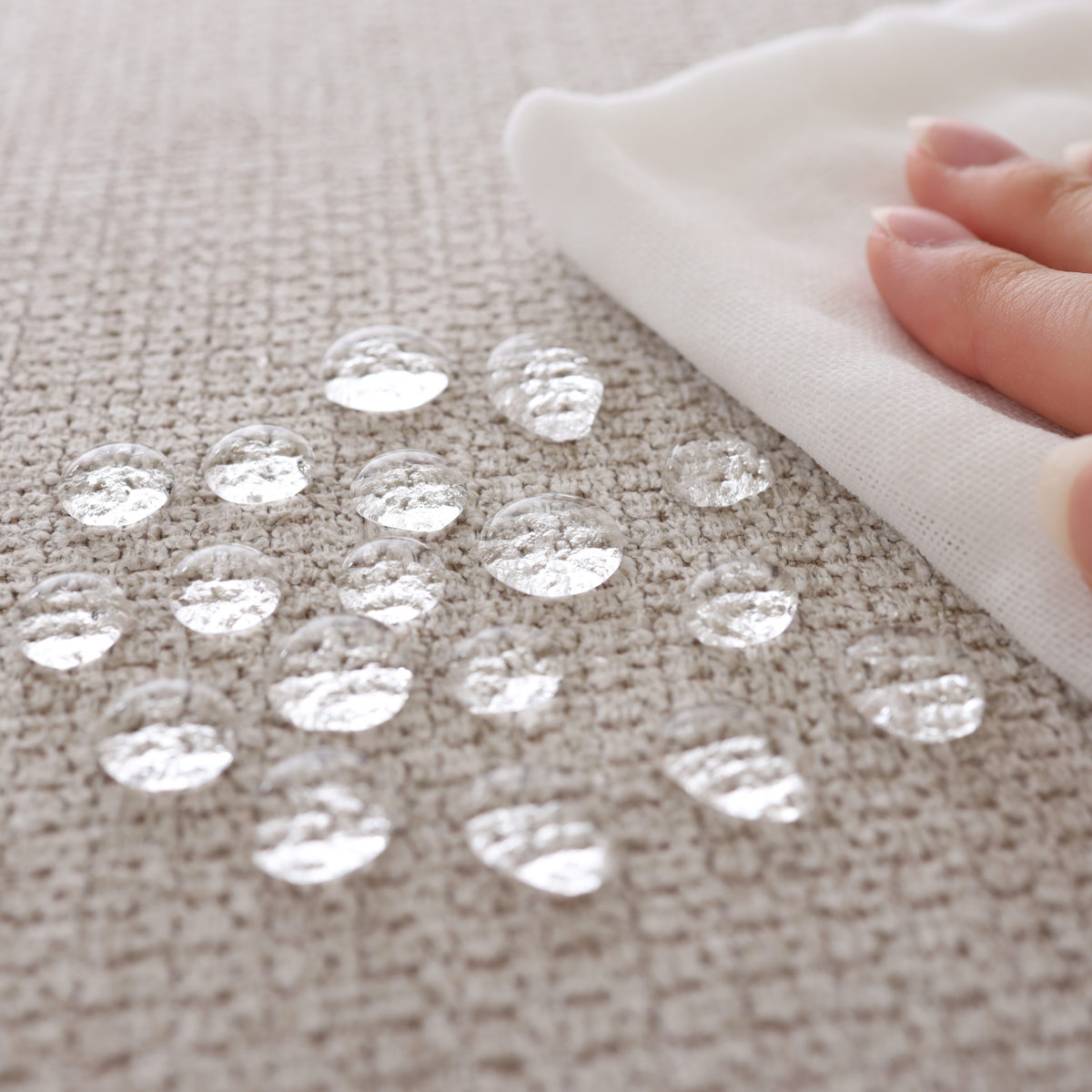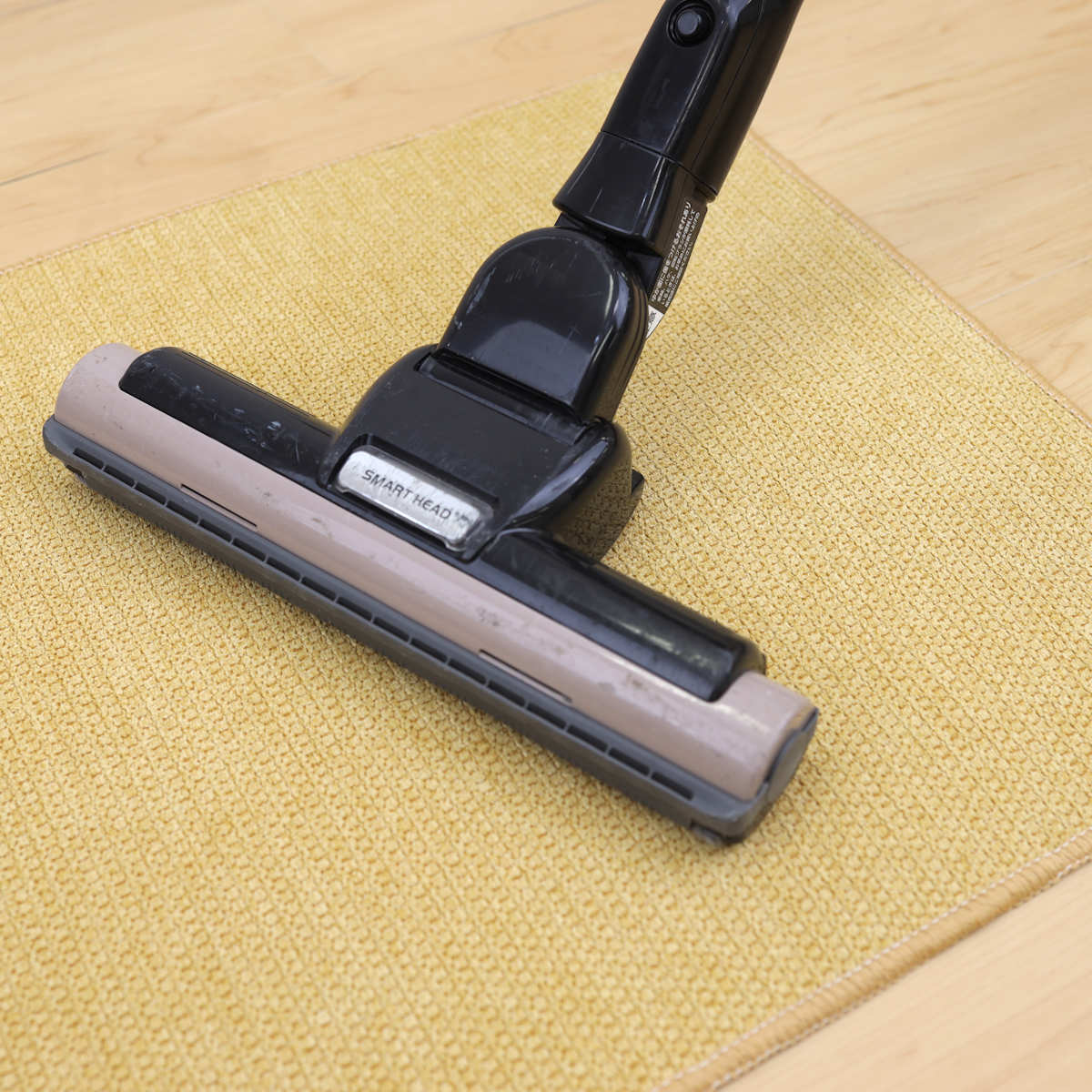 毛足がないのでゴミが絡みにくく、粘着クリーナーなどで簡単に取ることができます。掃除機をかけてもマットが浮き上がりにくいので、お掃除もラクにできます。