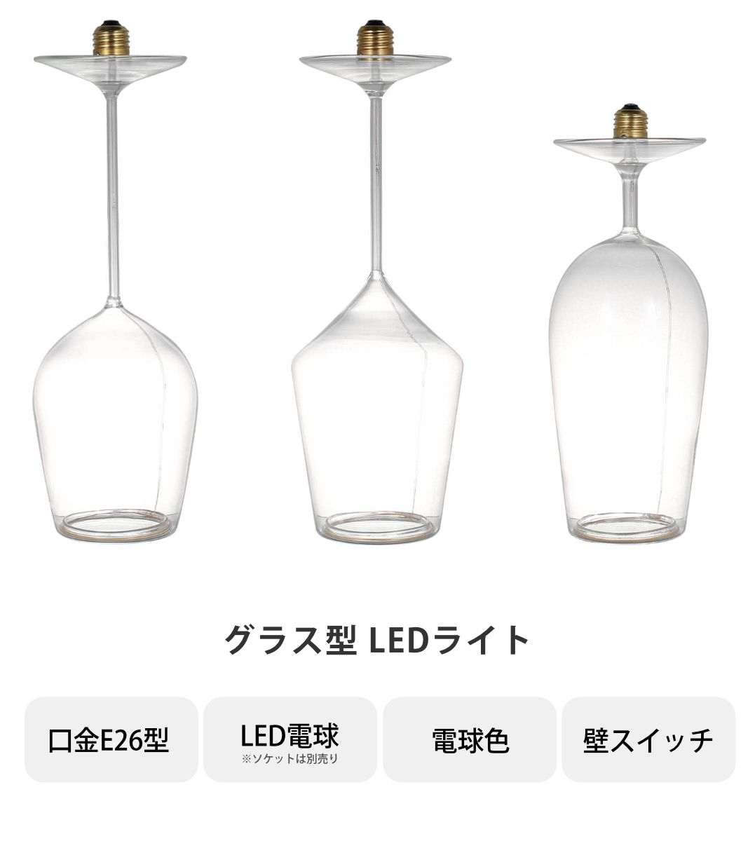 | 備考 | 対応ソケット:【ワイングラスA、B】直径10.5cm以内のもの 【ビールグラス】直径11cm以内のもの 使用電球:5W 口金:E26 色温度:2200k 定格電圧:100V 設計寿命:15000時間 |
