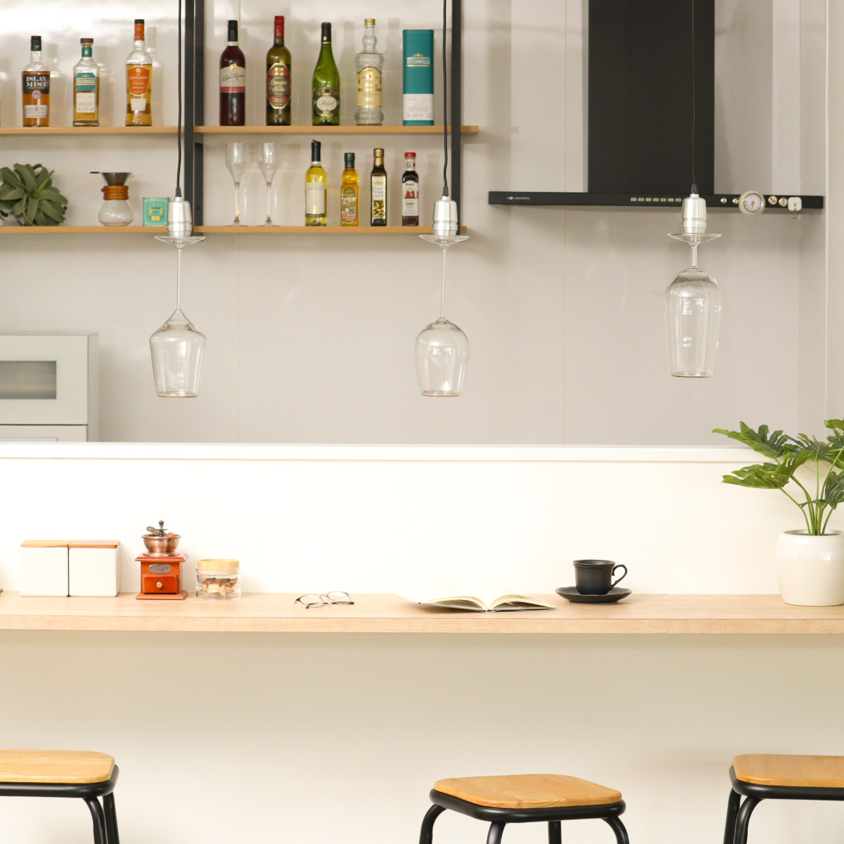 灯りが灯っていない時も、お部屋のインテリアとしておしゃれに活躍。日中はゆっくり過ごせるカフェカウンターのような空間を演出します。
