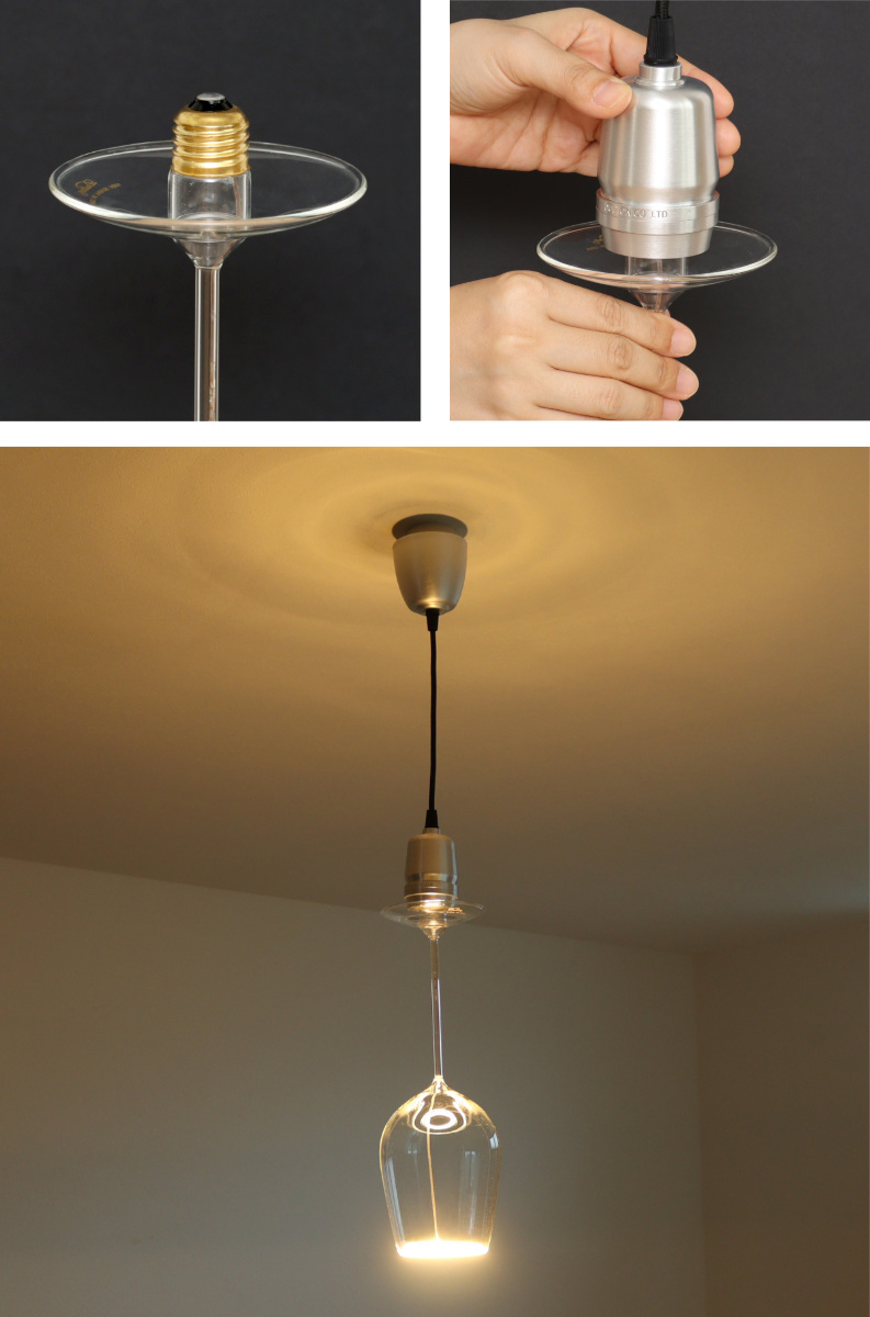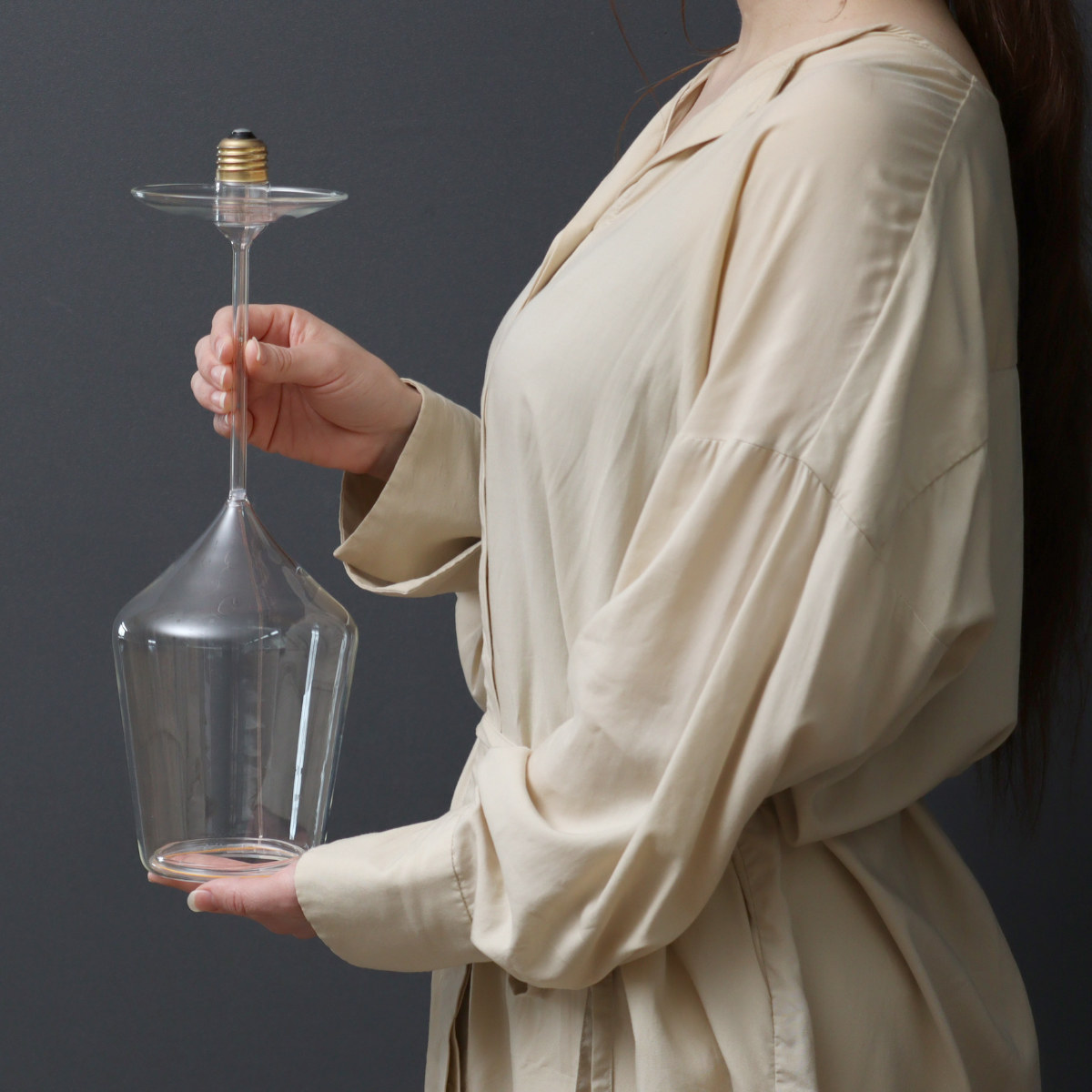 耐熱ガラス製のグラス型LEDライトです。電線が飲み口に沿って巻かれており、明かりを灯すとグラス全体のシルエットが浮かび上がって幻想的な雰囲気に。アクセントライトとしてお部屋の一角やカウンターに吊るせば、お店のようなおしゃれ空間を作ることができます。