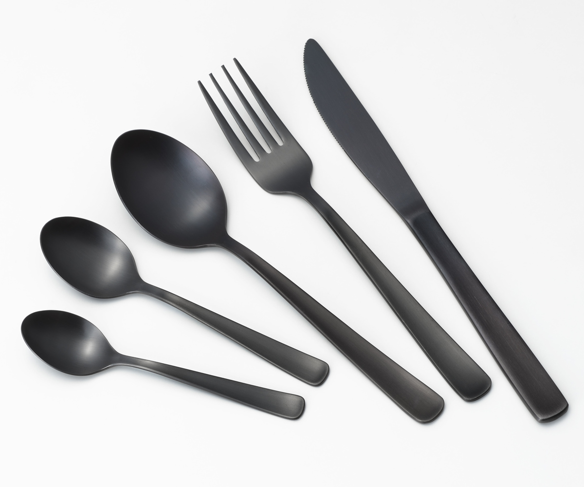 ●耐久性、耐食性に優れた黒酸化発色を施したマット調の落ち着いたブラックカトラリーです。