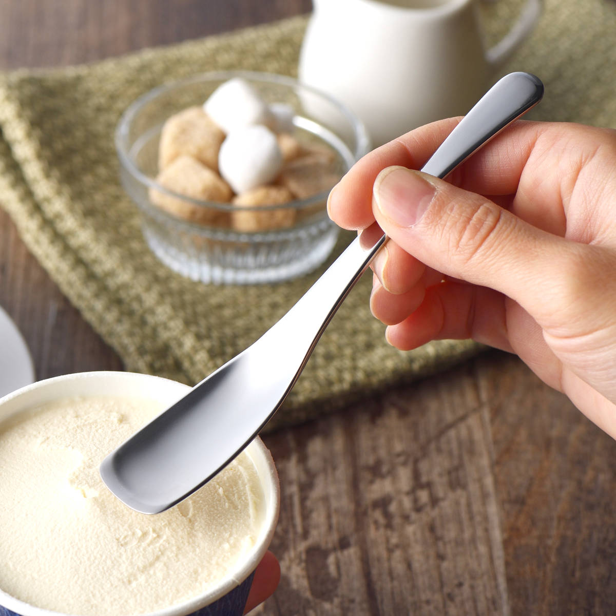 耐久性に優れたステンレス製のスプーンは、食事の色が付きにくく丈夫でサビにくいのが特徴です。金属加工の産地である新潟県燕三条地域で製造されています。