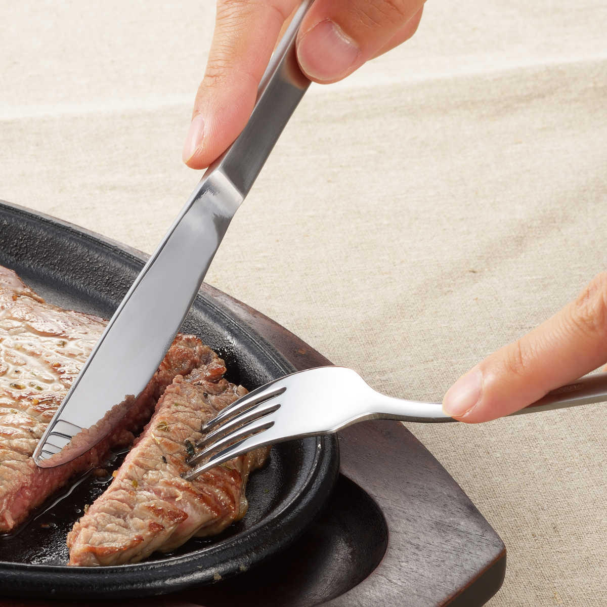 ステーキ肉が切りやすいナイフ&フォークセット