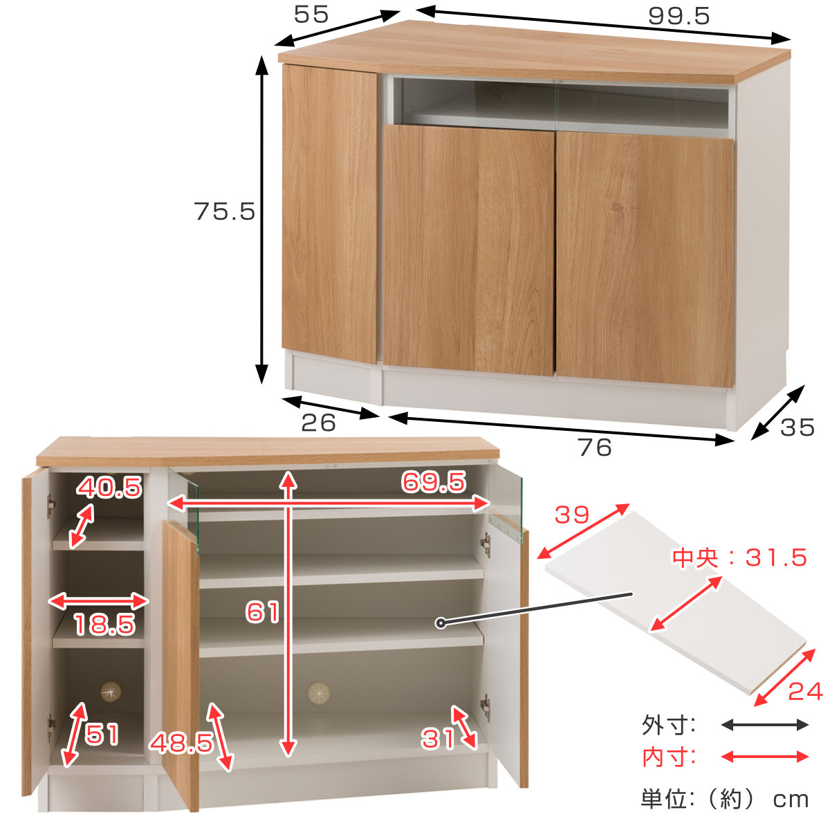 ![]() コーナーキャビネット 左壁付け 幅99.5cm | ![]() コーナーキャビネット 右壁付け 幅99.5cm |