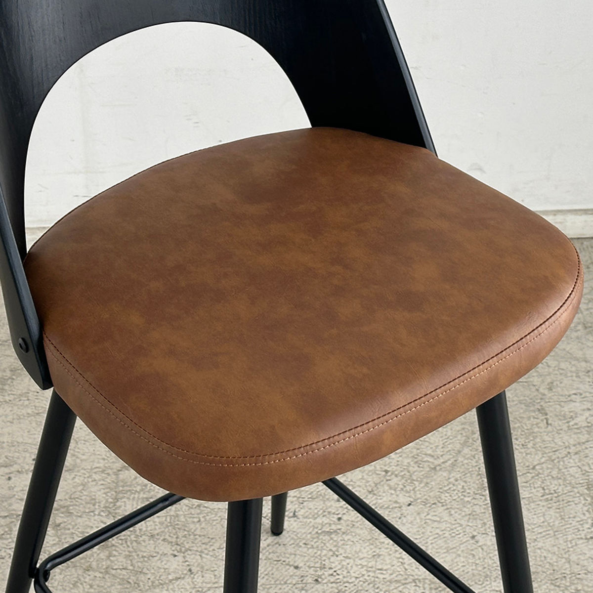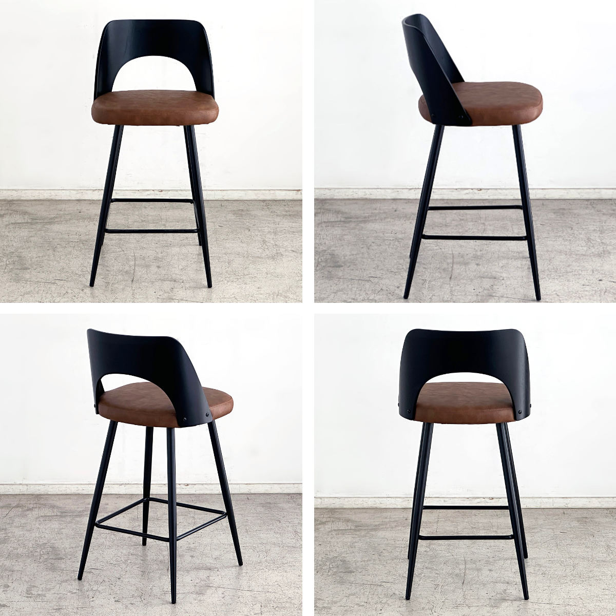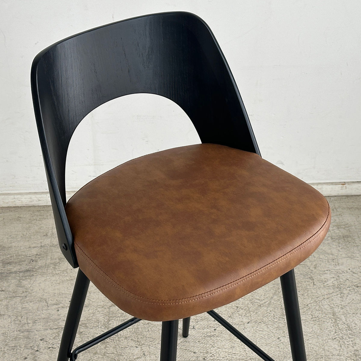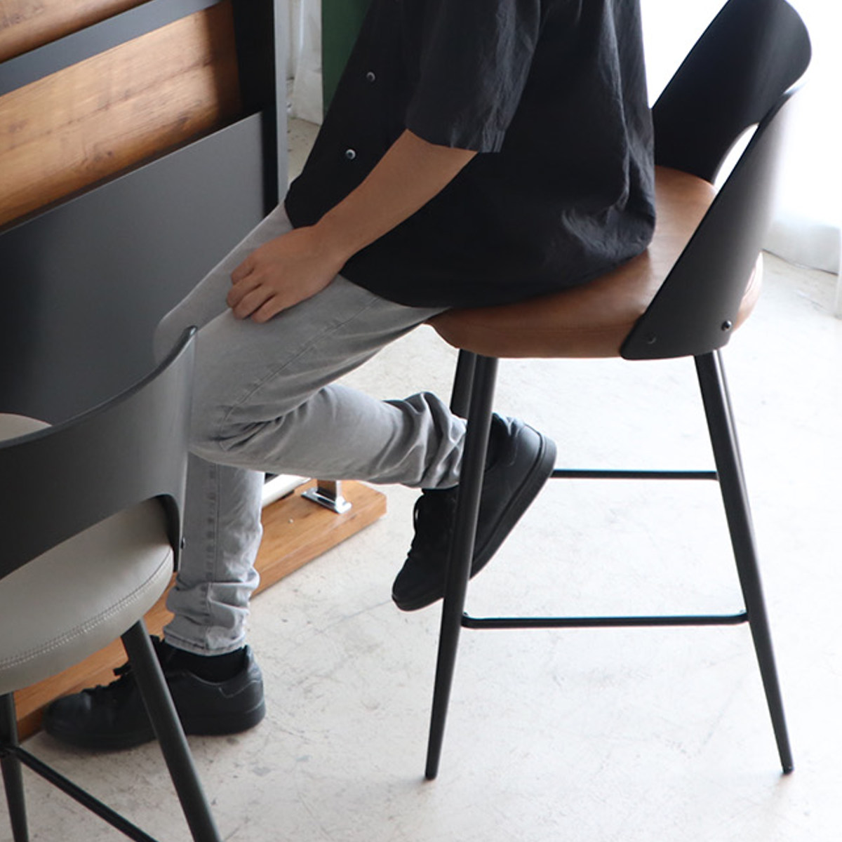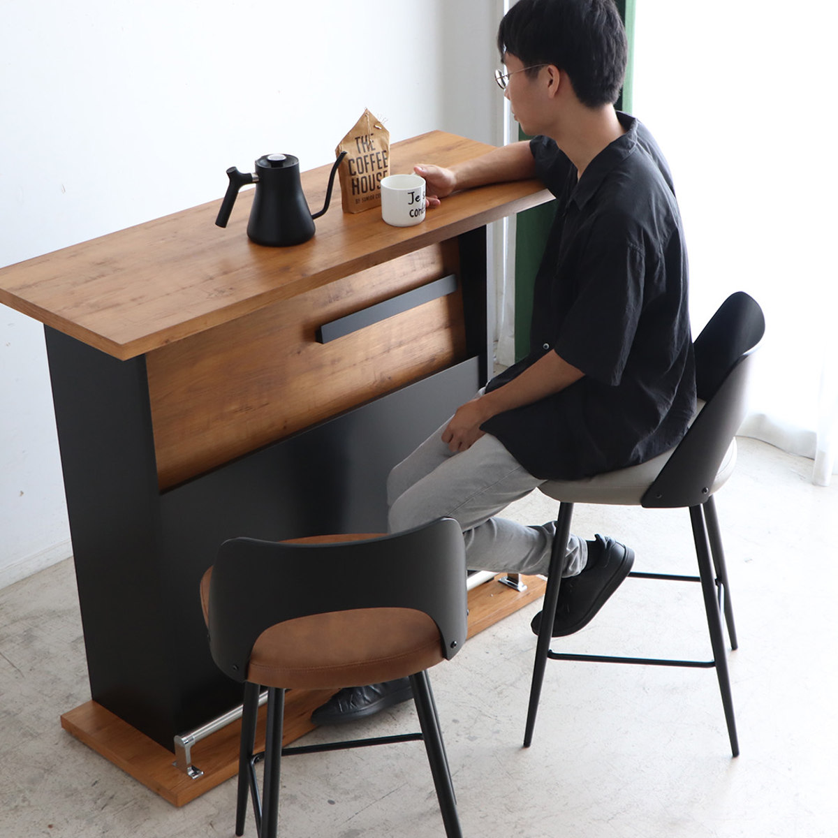 上品でなめらかなフォルムが美しいバーチェアです。木目調の背もたれとPUレザーの異素材を合わせたオシャレなデザインです。チェアとカウンターを合わせると自宅でもバーの空間に変えられ、家族や友達たちと楽しい時間を過ごせます。
